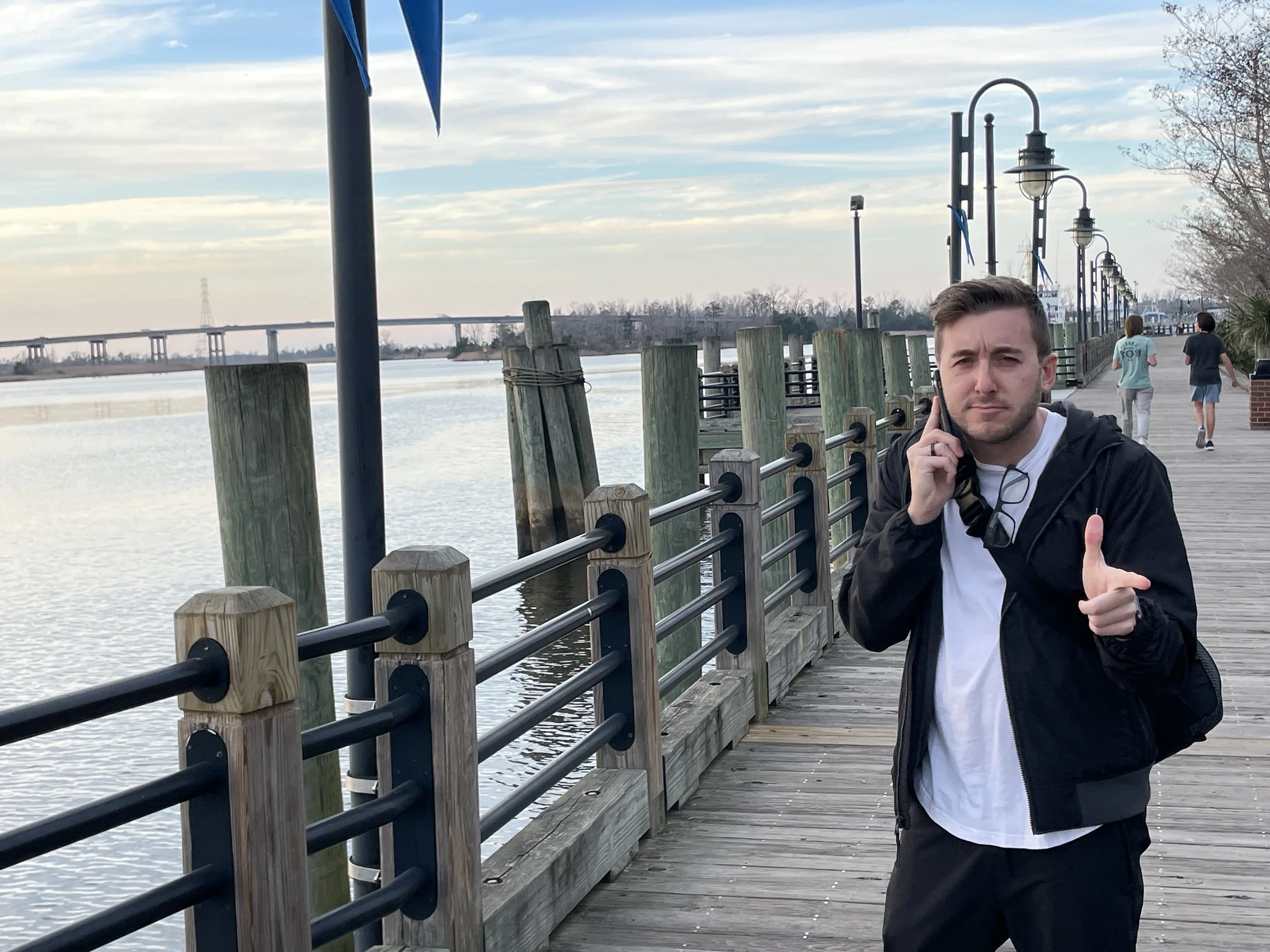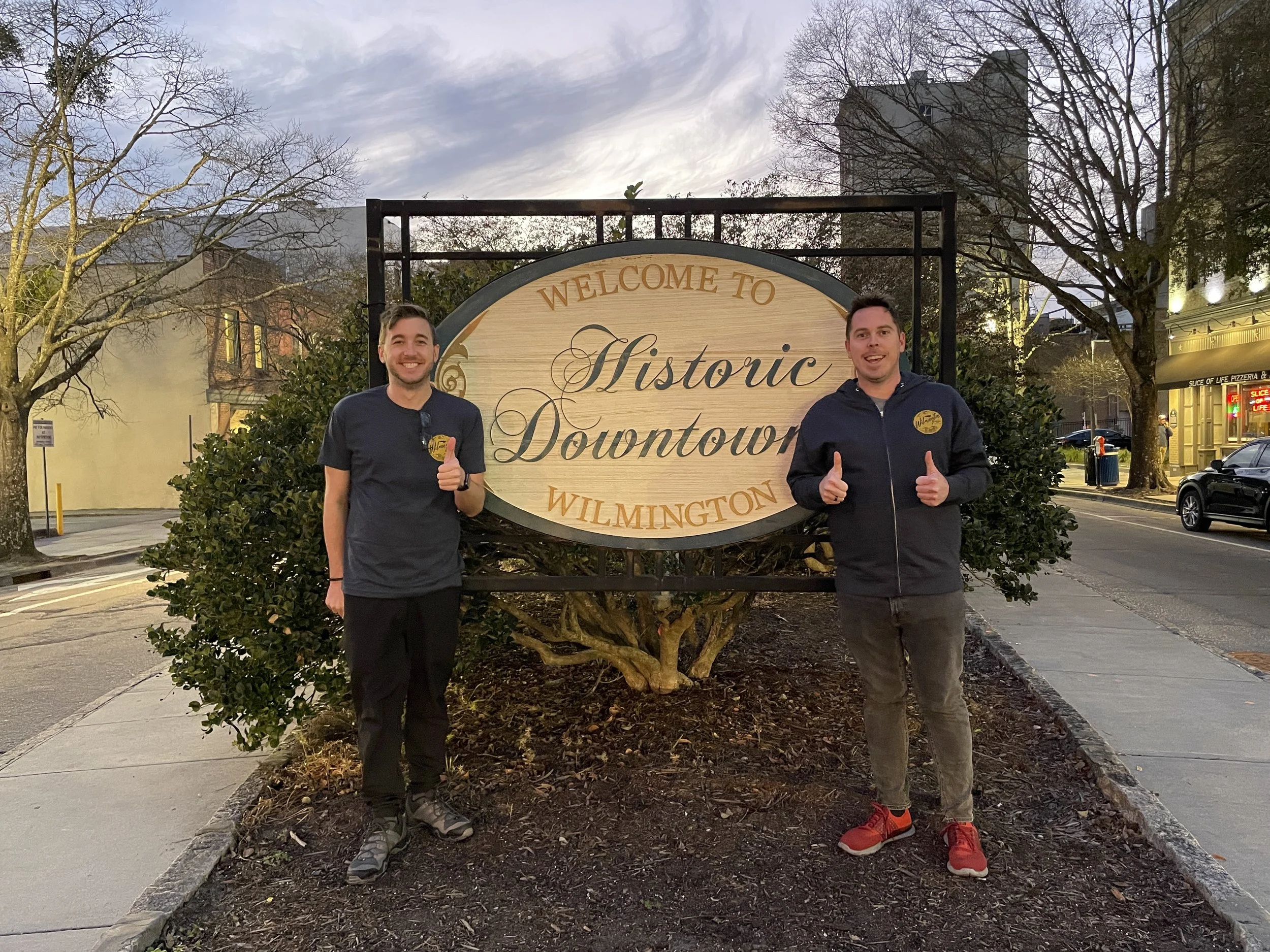 Catching the early morning flight let us get into North Carolina midday and we were able to take advantage of still having daylight to go exploring. Our first stop was the historic river walk area. Multiple scenes were filmed here including a tutoring session on One Tree Hill and also a scene from Scream5 where the main character says “I am Sidney <expletive> Prescott, of course, I have a gun.” This recreation didn’t quite translate…