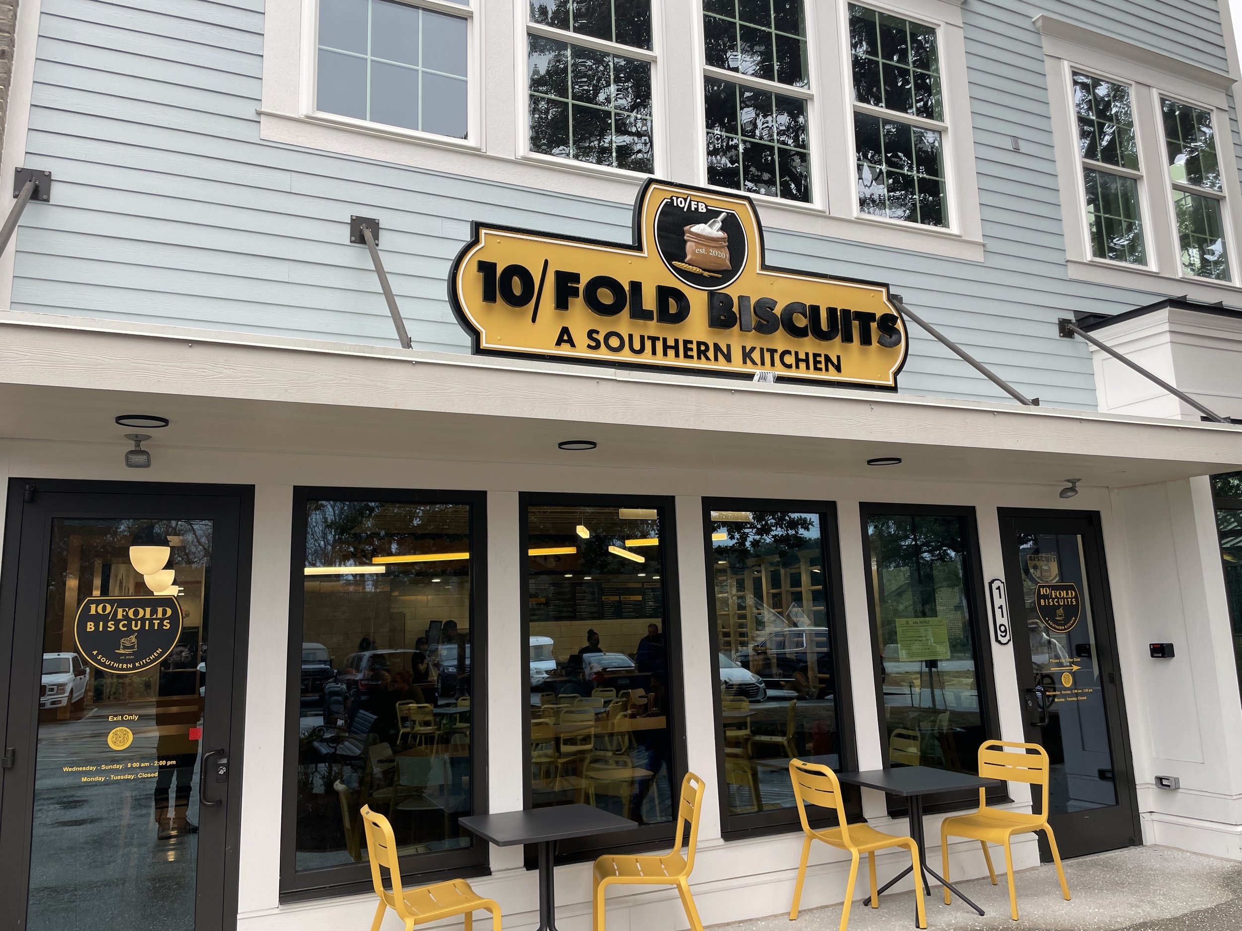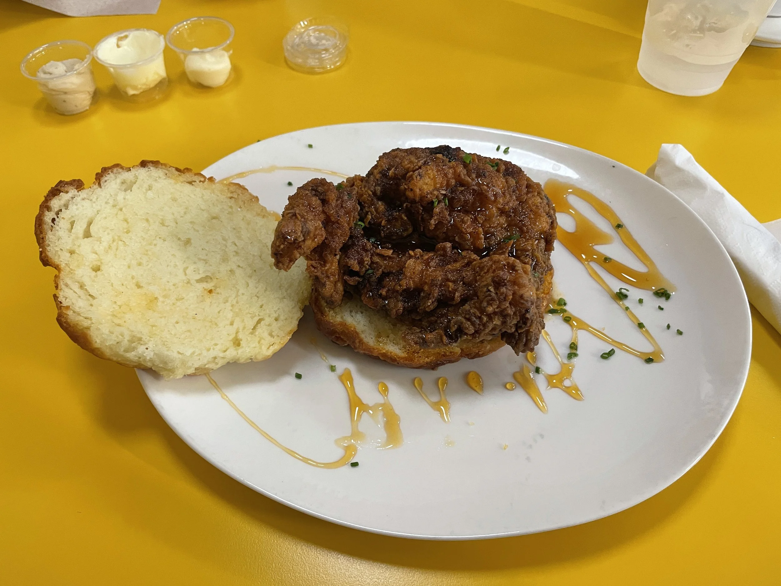 The shoe was on the other foot this time and the next morning Grant woke me up in his own special way. We took off shortly after and stopped at a place called 10/Fold Biscuit. This place was worth the heart attack I am sure I am going to have for eating here. When you have a condiment counter full of different kinds of butter you know I am in heaven.