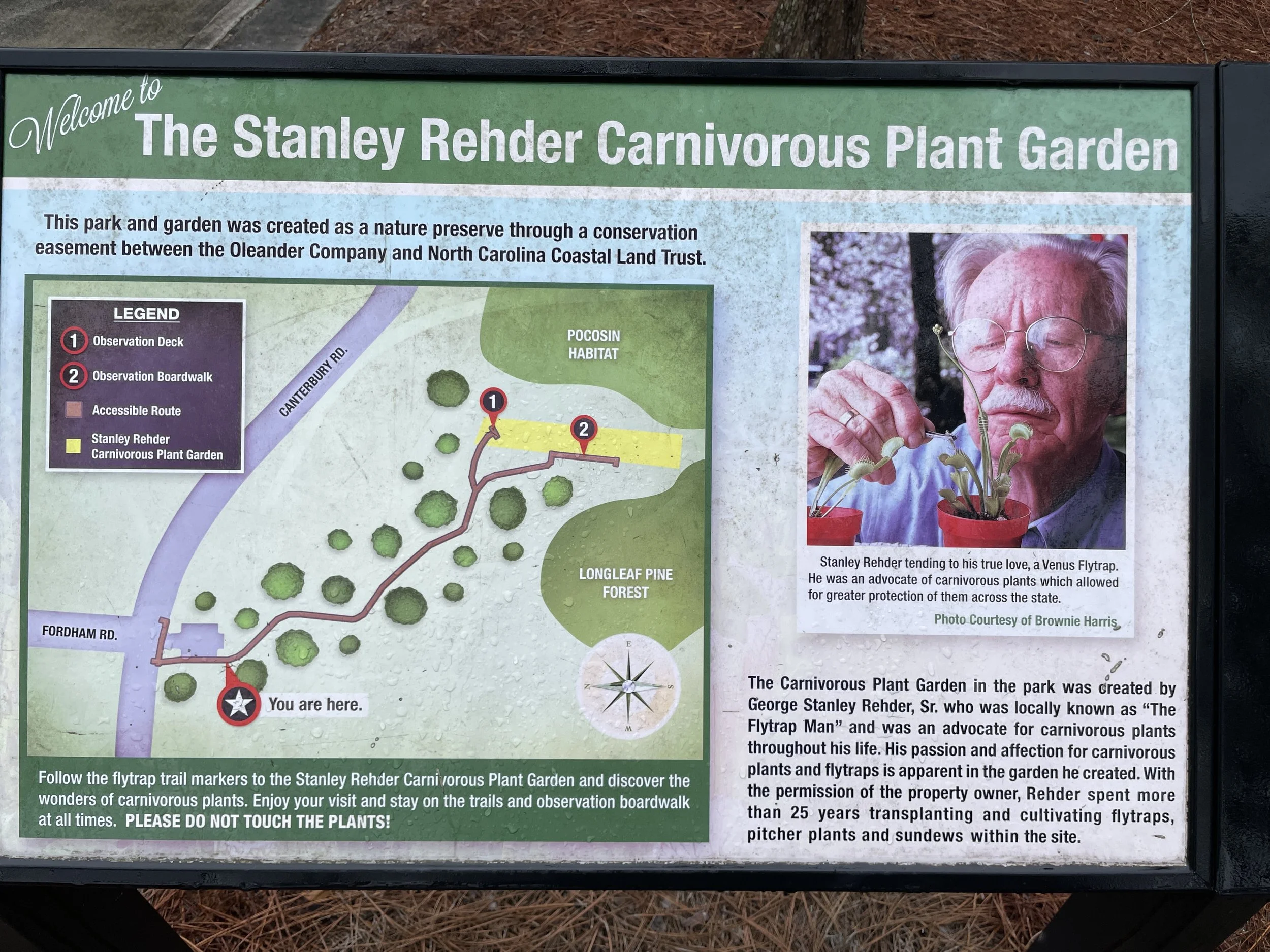 Fun fact about Wilmington that I am sure you did not know. Wilmington and the surrounding 75-100 miles is the only place in the world where Venus Fly Traps can grow naturally. Oddly this is the only place where the soil is acidic and wet enough for them to grow naturally. Didn’t know that until we visited the Stanley Rehder Carnivorous Plant Garden. While most of the plants didn’t survive the recent freeze there were still remnants of the plants and we did find a few fly traps.