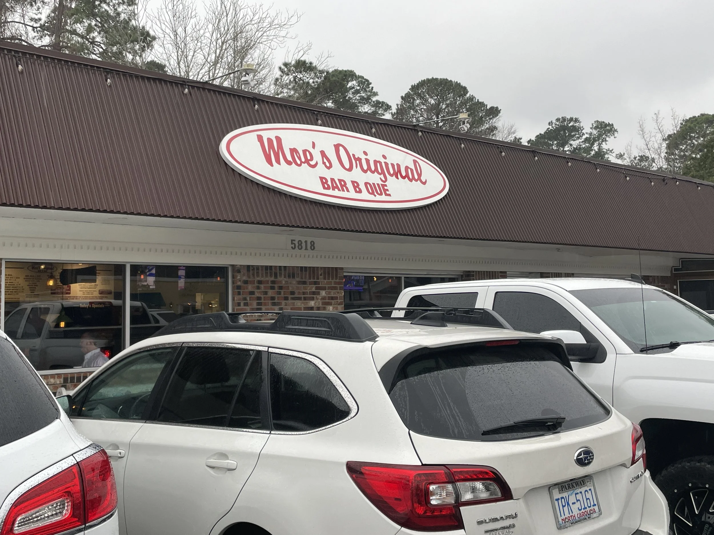 We didn’t hit the beach closest to Wilmington so we attempted to go to Carolina State Beach, which was just right outside of the city. We drove in and then drove away just as fast. Not a beach, but more of a launching pad for boats. There was a small patch of sand, but not worth having to deal with sand on a plane. Before we got on the plane — we knew we needed to eat. Having been in the Carolinas for the last two days I was not going to leave without having some Carolina BBQ. Looking at the reviews— we decided to stop at this place called Moe’s Original BBQ. The place was packed and so we knew we were onto something. I ordered some BBQ and a few sides. The BBQ was good, but nothing earth-shattering. The sides— WOW! Delicious! Grant said it was the best banana pudding he had ever eaten. We went straight to the airport from there as we wanted to end on a high.