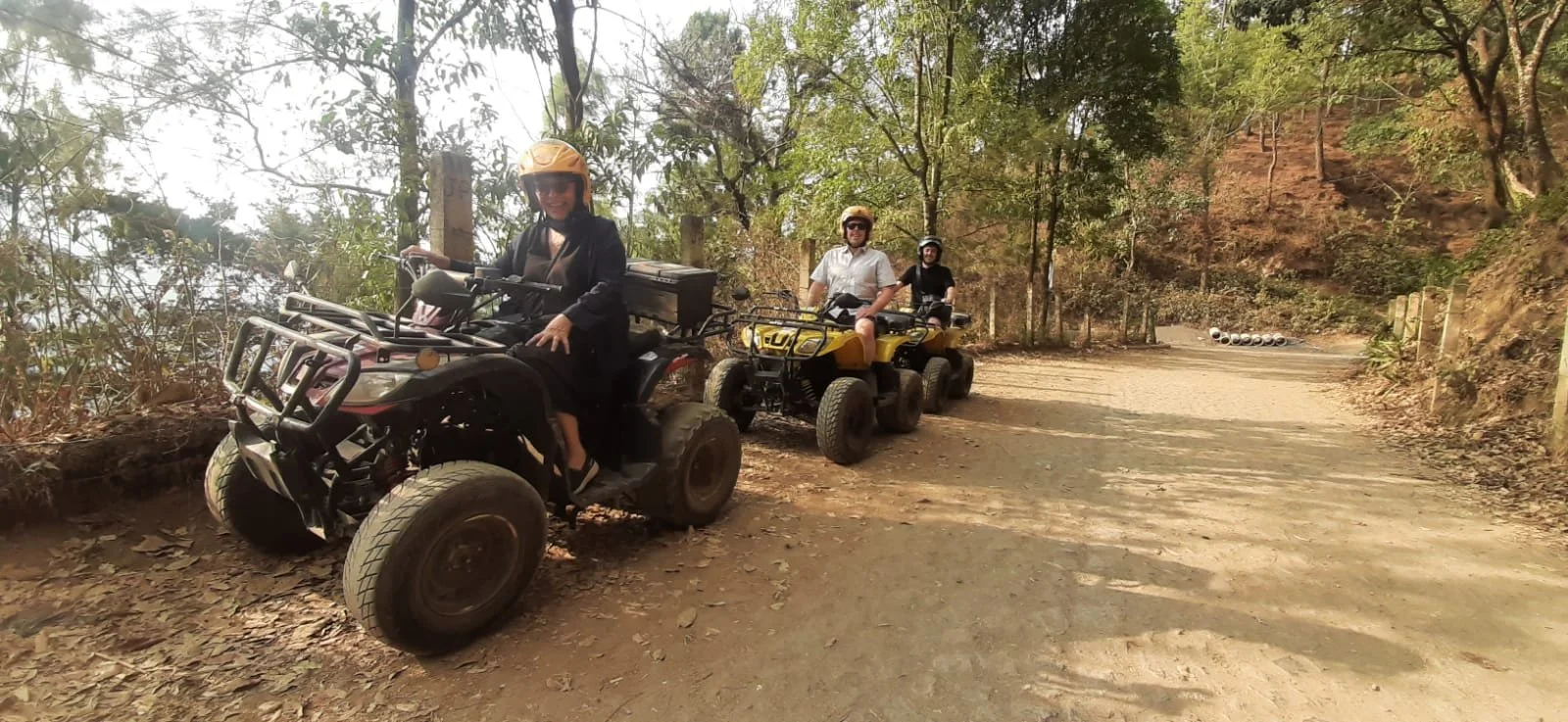 Here is the scene. 8 ATVs are going down a very congested street with cars, tuk-tuks, motorcyclists. I am car 8 and the “guides” are in front of me. The street is one lane only. So the cars are piling up behind us because we are slower. Going, going, going, break, stop…stall. Let’s start it up. Nope. Start it up again. Nope. Crap. HONK. HONK. HONK. Cars are piling up. Gas + ignition….nope. HONK! Gas + ignition…nope. HONK! HONK! HONK! The third time is a charm—YES, it starts. We make it to our first stop and the tour guide says that the ATVs are not warm yet. Yeah, that was the excuse they gave everyone when their ATV stalled. A lookout of the city and then back on the ATVs. Next stop— Hobbit Tenango.