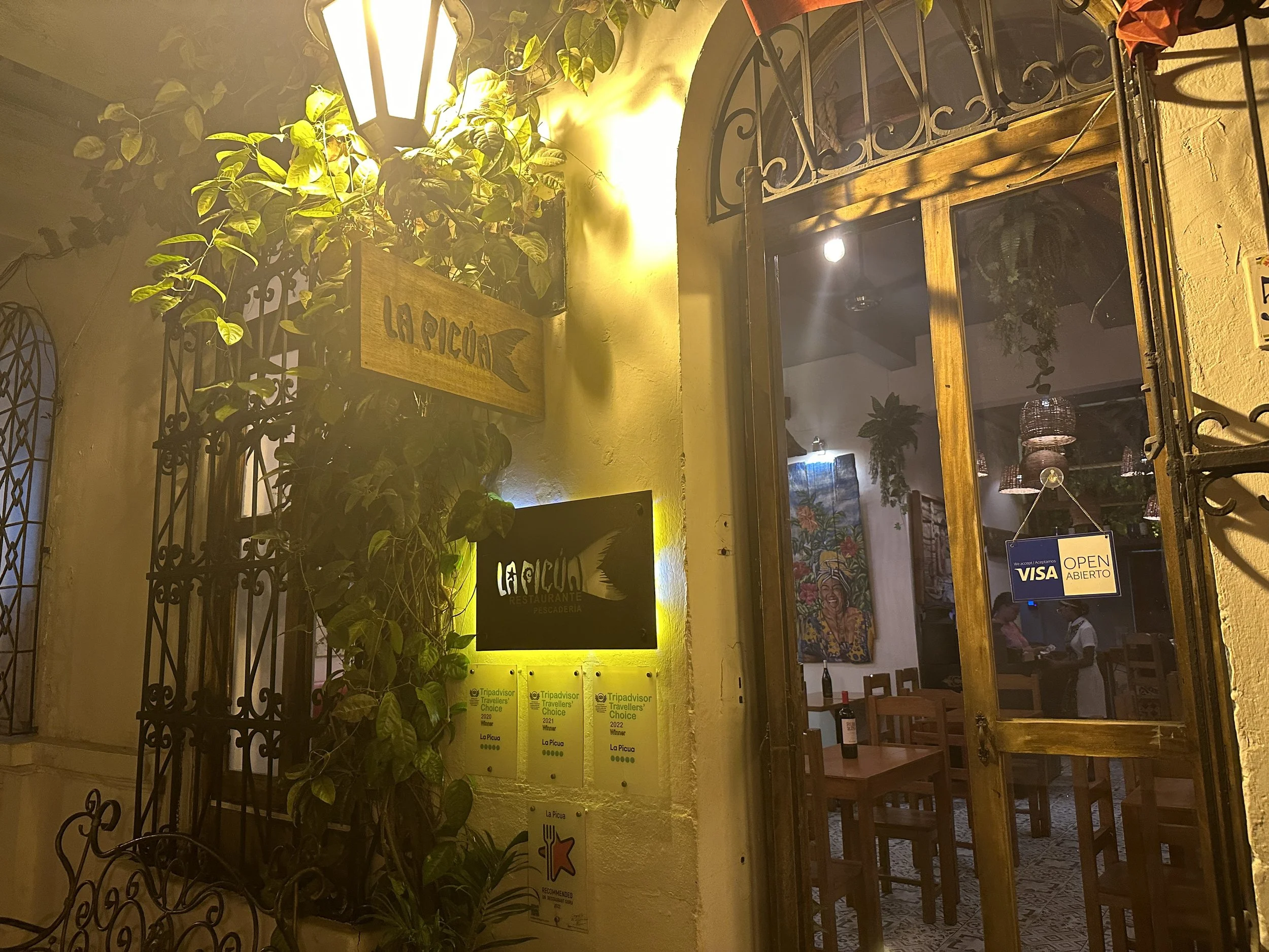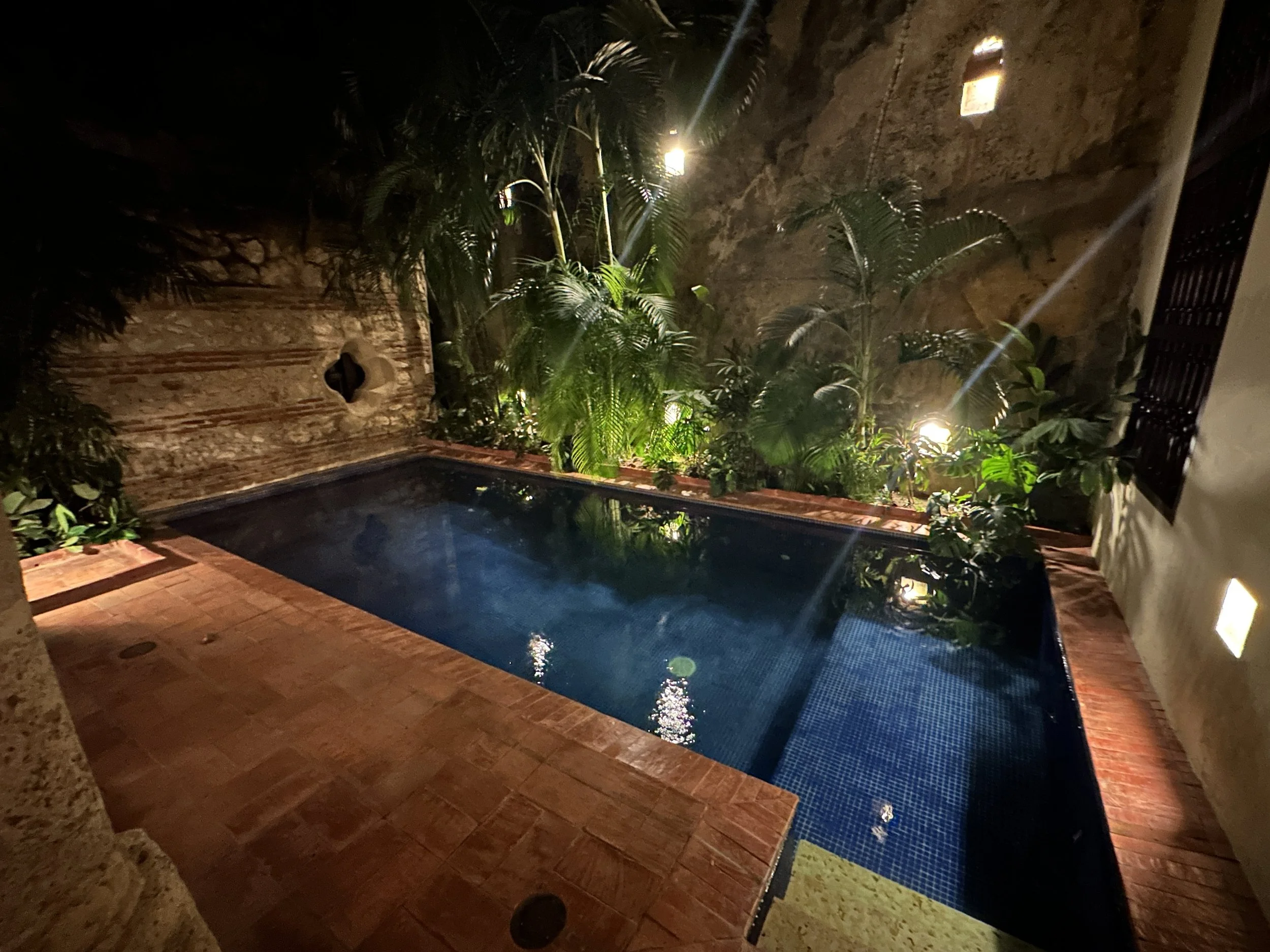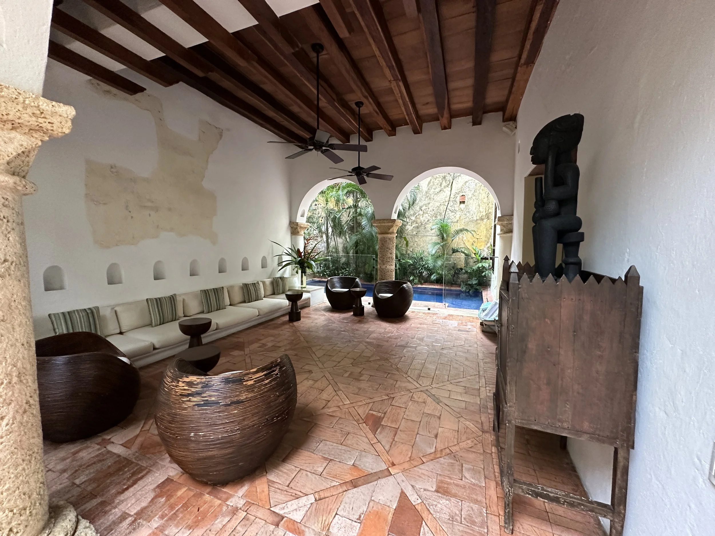 Quick hour and a half flight and we landed in Cartagena. Knowing Uber worked, we skipped the insanely priced taxis and were whisked away to Hotel Quadrafolio. Here we would be joining Grant’s Aunt Kate and her Friend Marianne (aka Mimi). The hotel itself is surrounded by walls and gated off to not show anything behind it. Not knowing what to expect, the door opened and we were greeted by several friendly faces and a beautifully designed hotel. Those friendly faces (really all Colombians were extremely friendly) gave us a local lime drink and we dropped off our bags.