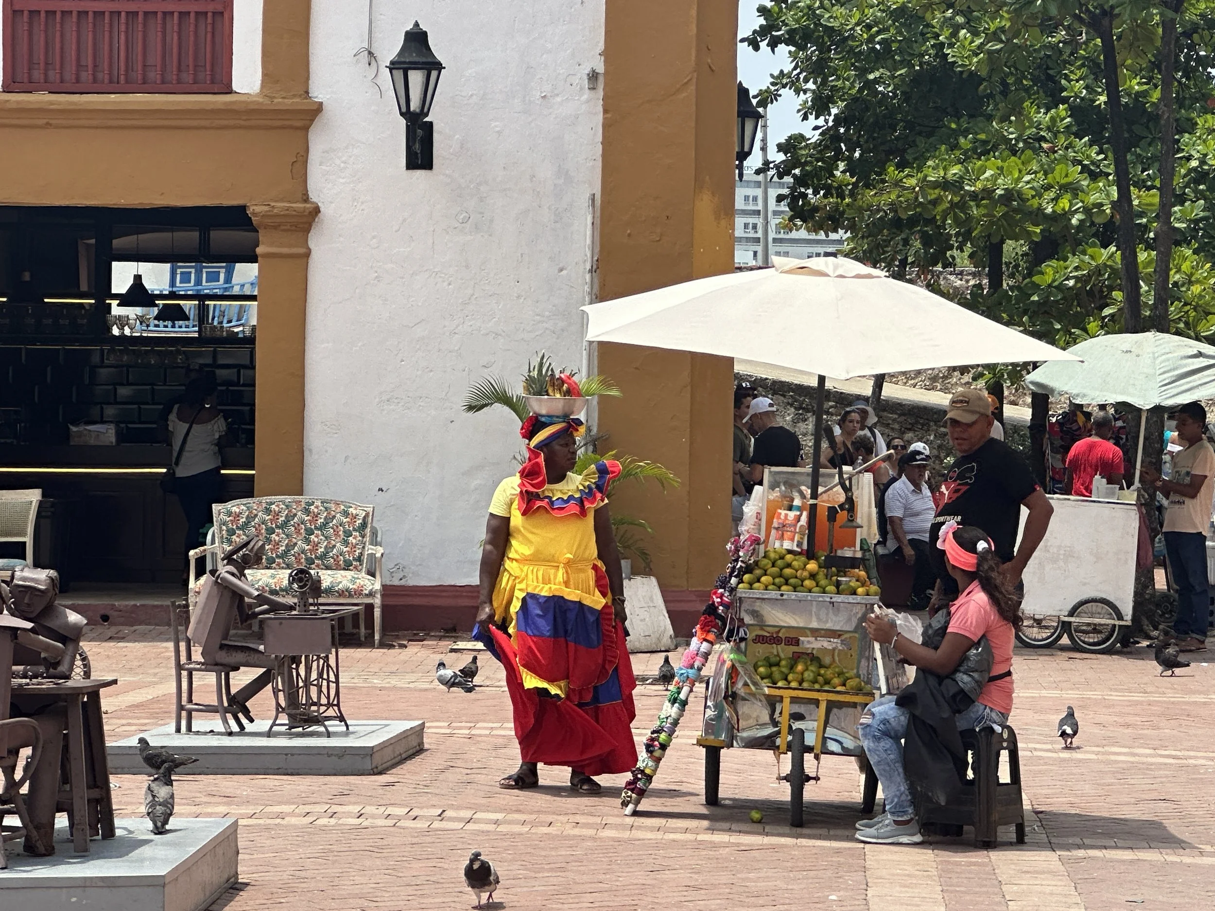 Back in the Uber, we went, and up next was Plaza de San Pedro Claver. This area is one of the main squares in the walled city of Cartagena and is famous for its beauty and its proximity to the San Pedro Claver church and museums. We walked around a bit more, checked off some of the tour highlights, and then went back to the hotel for lunch. We decided to eat at the hotel (great choice) due to Grant and I having a tour at El Totumo (mud volcano).