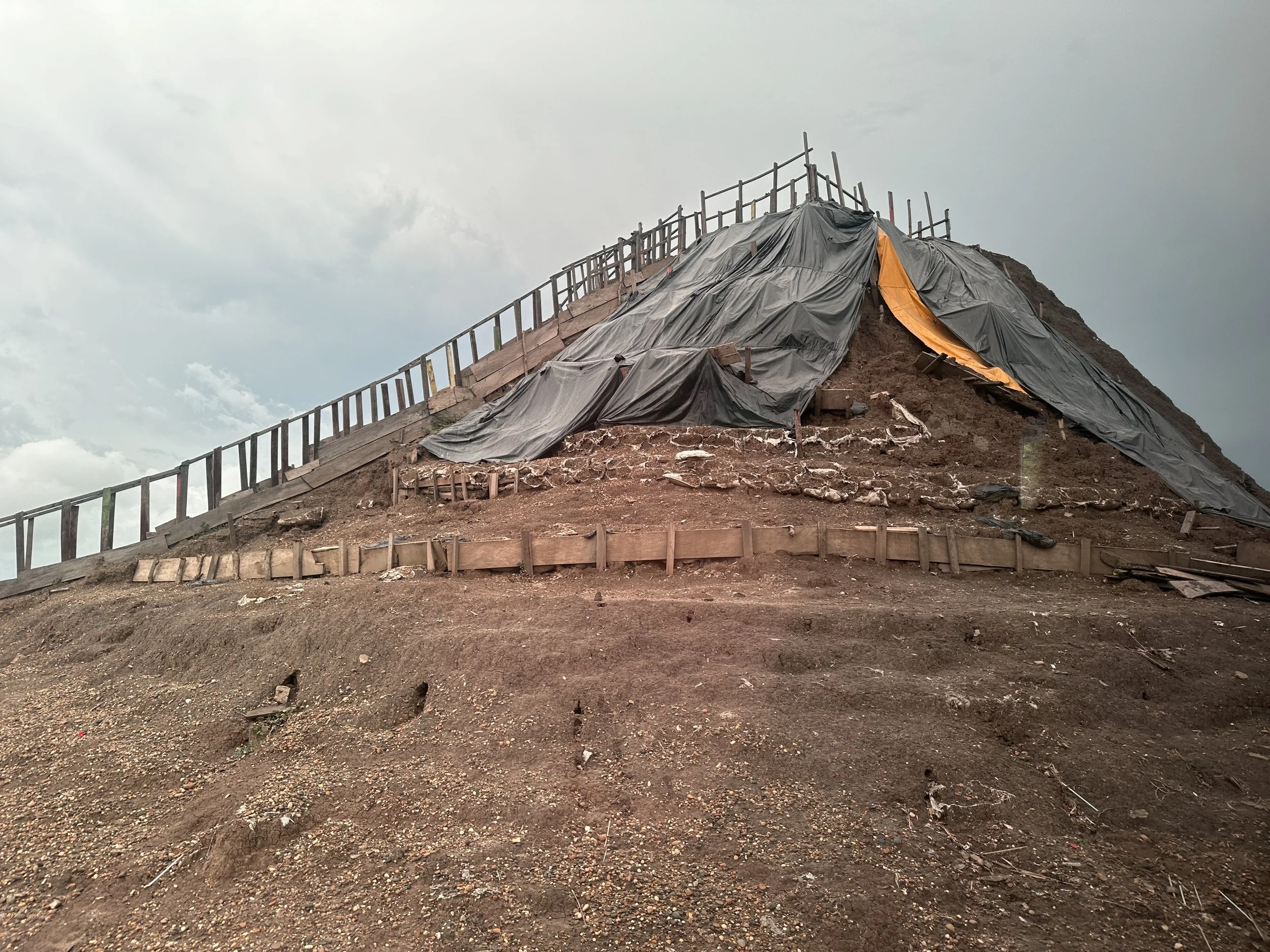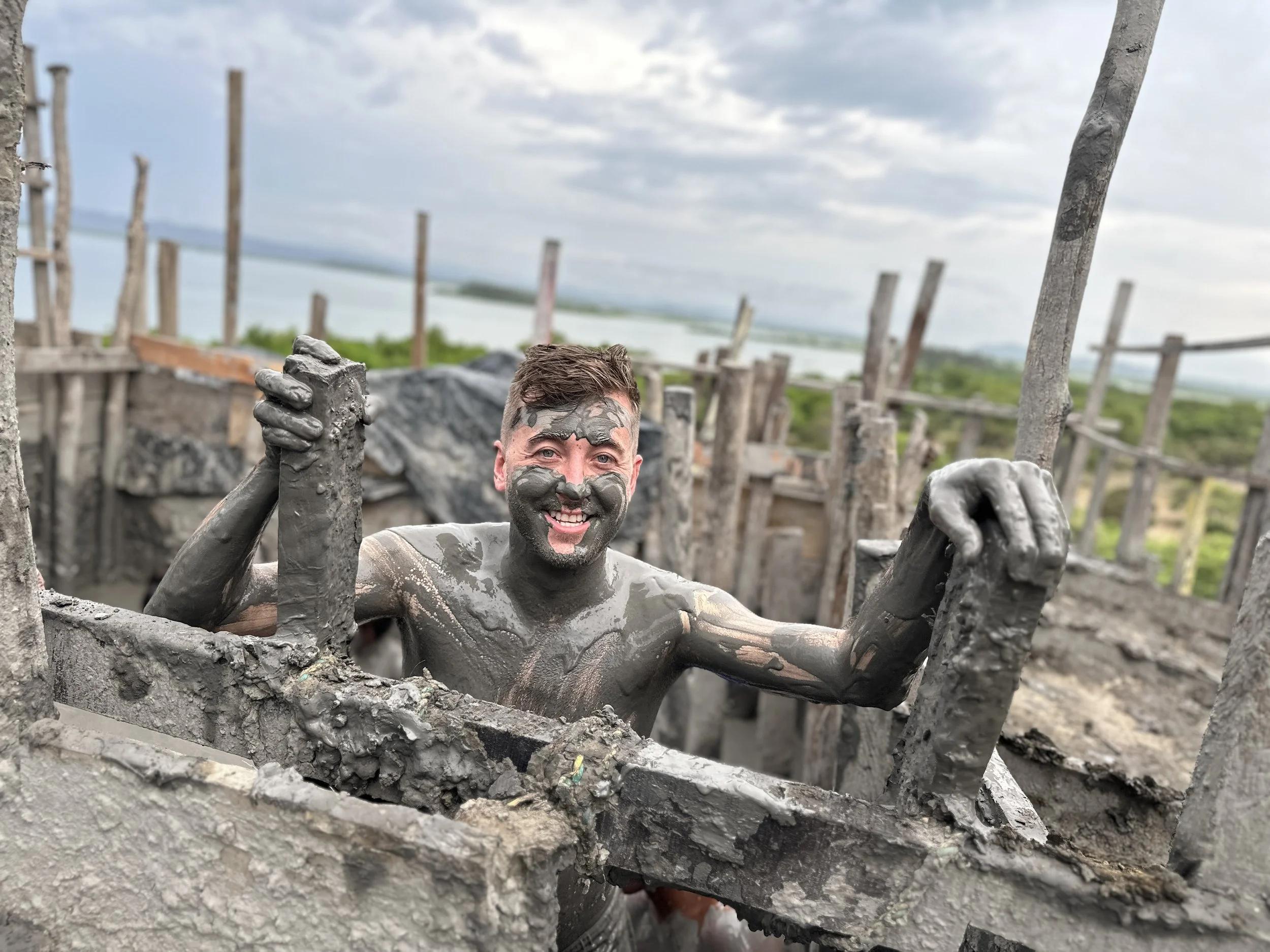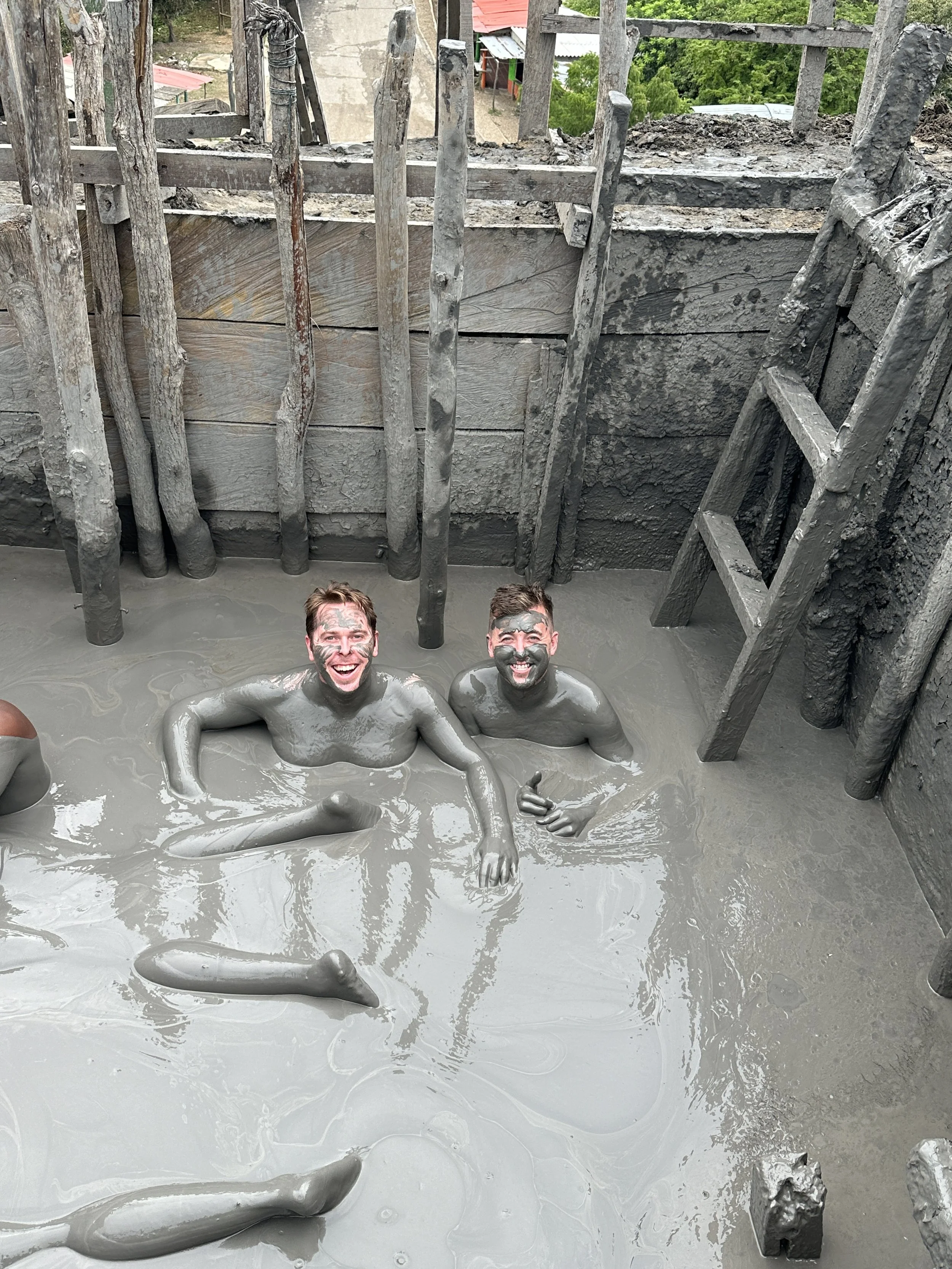 The tour guide knocked on the door right on time, we hit the road in a clean van and made our way to Santa Catalina. Here we were greeted by a mound of dirt we climbed. There are plenty of blogs out there that tell you what to expect and there is a reason. It’s a bit sketchy. You leave the van and are ushered into a place to change. You locked up all of your belongings in a cabinet and this random guy keeps the key. Grant was super uncomfortable with this, but I was less so as I was expecting this. Grant kept his wallet in a pair of shorts with us, left it out of the mud, and it was fine. Once everyone in our group was done changing, sufficiently anxious about their belongings being stolen, we were ushered up the stairs to the mud itself.