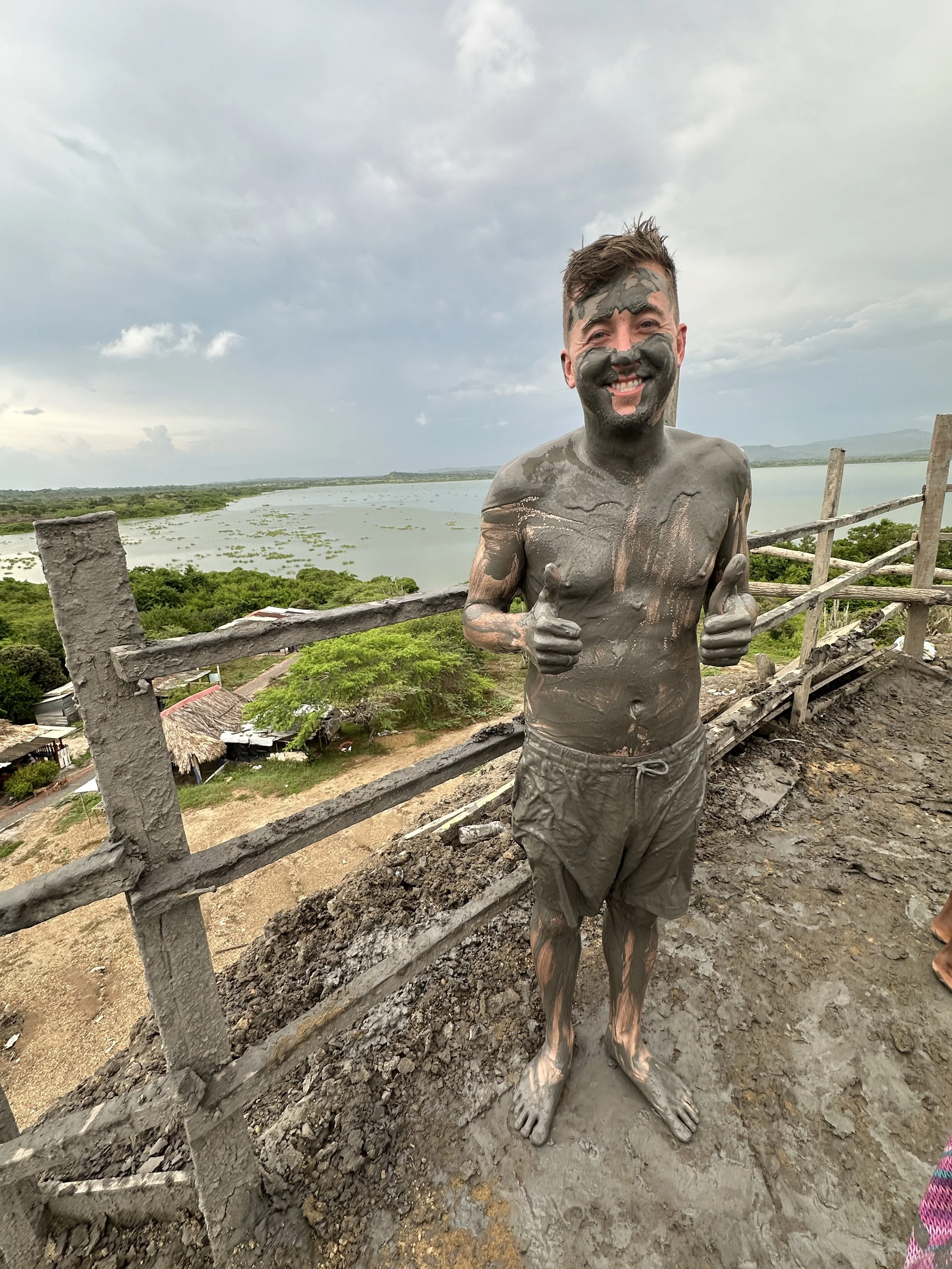 I was the first one in and it’s super rickety. The whole area is caked in slippery mud and you have to grab the railings otherwise you will slip. I climbed down and slowly sank into the mud. I was told to lay on my back and I just kind of floated. The guy in the mud with us then slid me to a guy who began to give me a massage. Once he was done, I was slid out of the way for the next person. I just kind of bobbed in the mud. I tried to sink further into the mud, but couldn’t. Eventually, everyone on the tour was in the mud and we just relaxed. There were about 10 of us in the mud at once, but it’s supposed to hold up to 20. We then were told abruptly to get out. Dripping mud, we climbed the ladder while a photographer took photos of us. We were led to a stream where local women cleaned the mud off of our bodies. They got in there not shying away from sticking their fingers up our noses. Then they asked us to take off our swimsuits. When in Colombia, right? Naked in this muddy lake we watched as they cleaned the mud off our suits and then returned them. All the while they were telling us to remember their names— Chili and Yasmina.