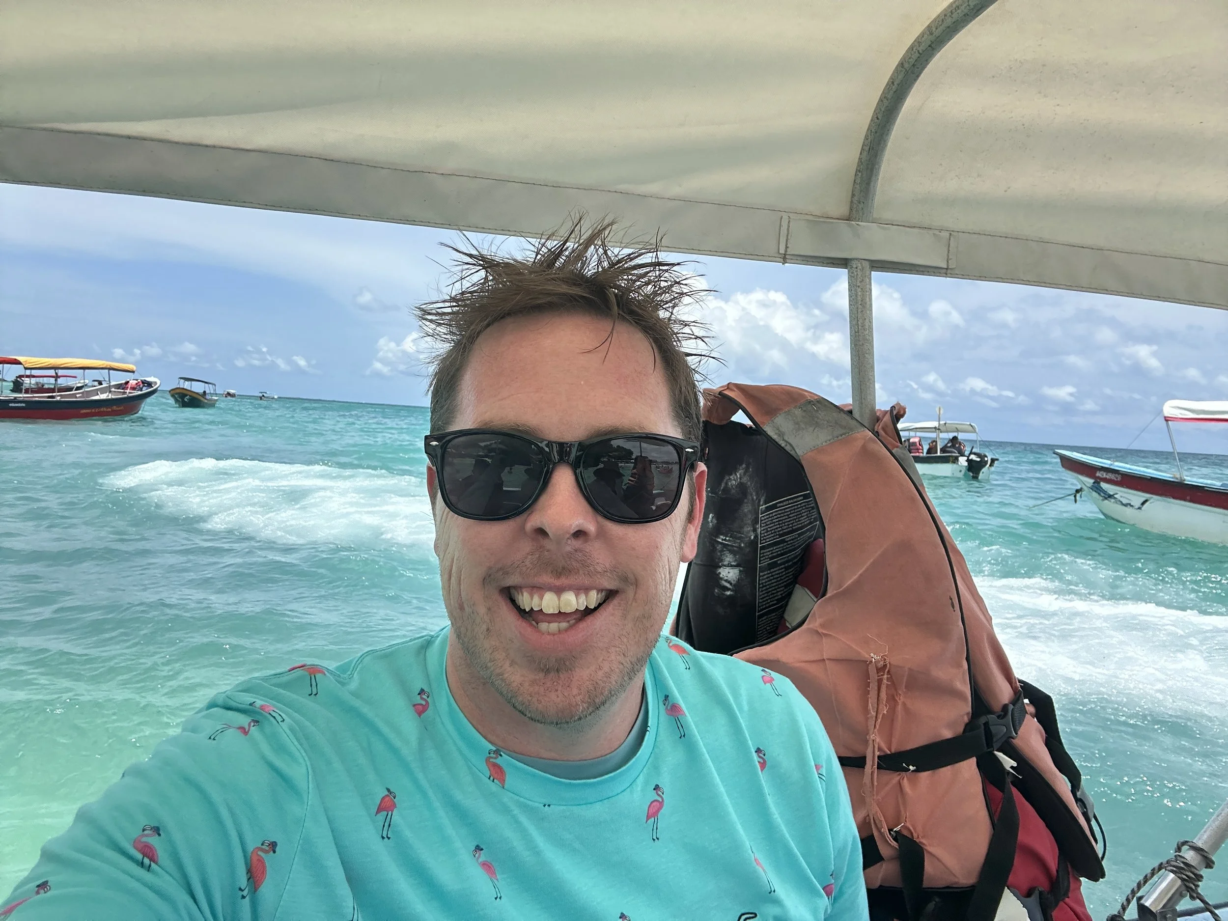 Lunch came and we ate chicken, burgers, and ceviche. We didn’t eat the ceviche — Kate did. Afterward, we swam around for a bit and called it a day. The boat came, and dropped us off where we were accosted by “helpers,” and was able to make it to the cat in one piece. What we didn’t realize at that point was that as we were getting out— Kate handed her bag to one of the helpers on the boat when she was getting off. During that split time, they had taken her AirPod case and glasses. Thankfully they didn’t get anything that was valuable or irreplaceable.
