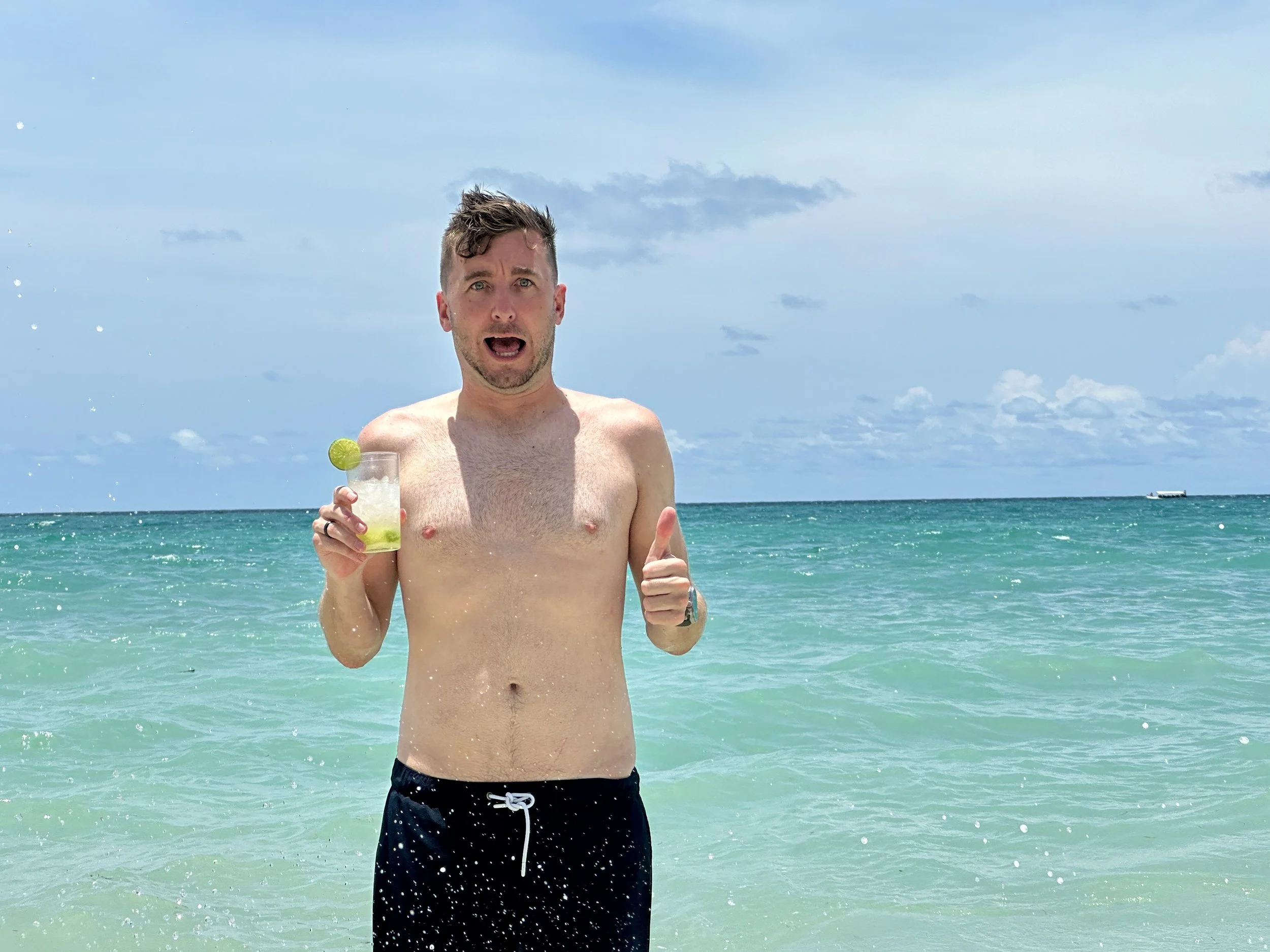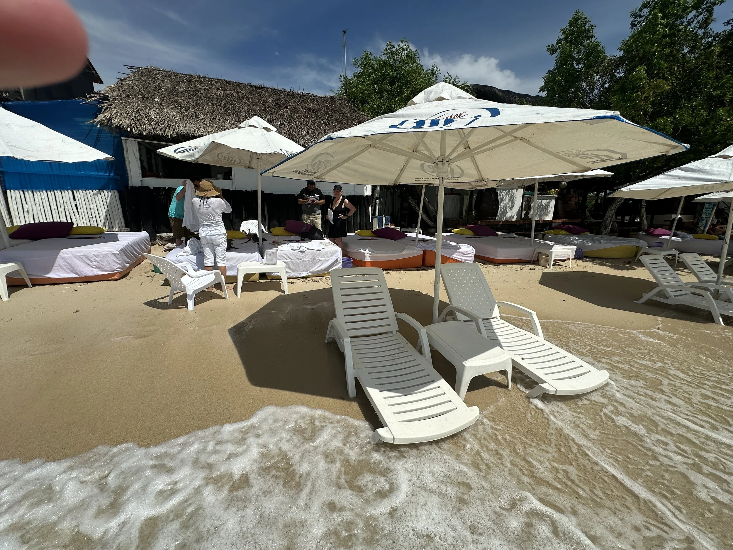 The tour guide brought us to a boat and after a quick 10-minute boat ride we were on the other side of the island away from everyone. They had a private cabana for us set up with beach beds, reclining chairs in the water, and direct access to the water. We started with some Caparini drinks, like a mojito but better, and then hit the water. There was always one person with the belongings at all times to make sure nothing was taken. The massage ladies came over and we said no thank you. There were other vendors and again we said no thank you. It was a bit annoying, but it was much better than what it could have been.