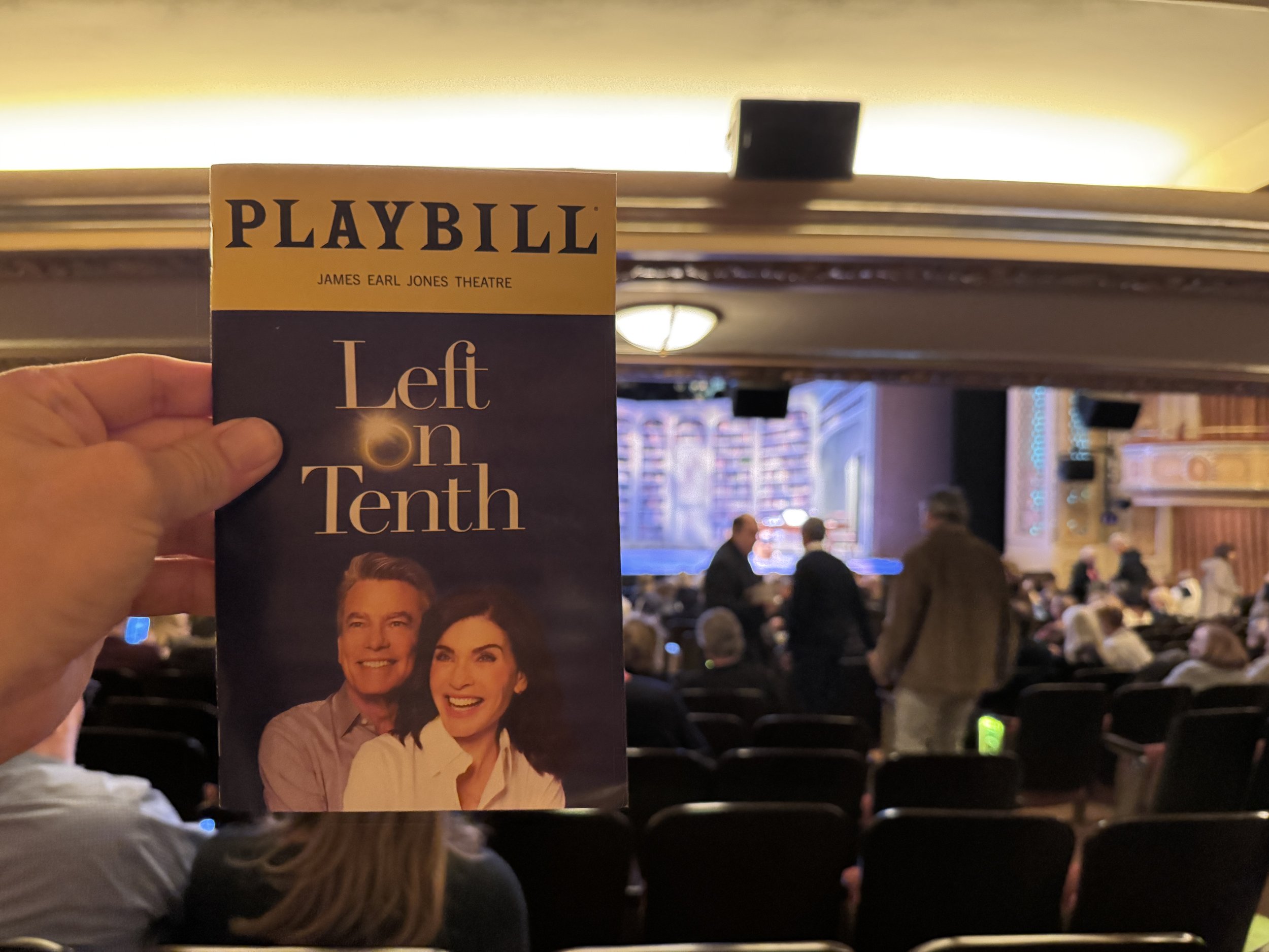 Sunday was the only day that was a big question mark. Prices for tickets were insane, and availability was terrible. After striking out on finding a reasonably priced show online, we settled on attempting to get rush tickets to Left on Tenth. I think we were only able to get tickets because their target audience— people near death— could not get their walkers there fast enough. Thankfully, Grant has two speedy feet that were able to dodge and weave through the walkers to get to the box office and get 3 orchestra seats for $45. It was a steal considering what prices were going for. In the future, Grant is not allowed to hold onto paper tickets because he lost his before the show, but thankfully was able to recover it.