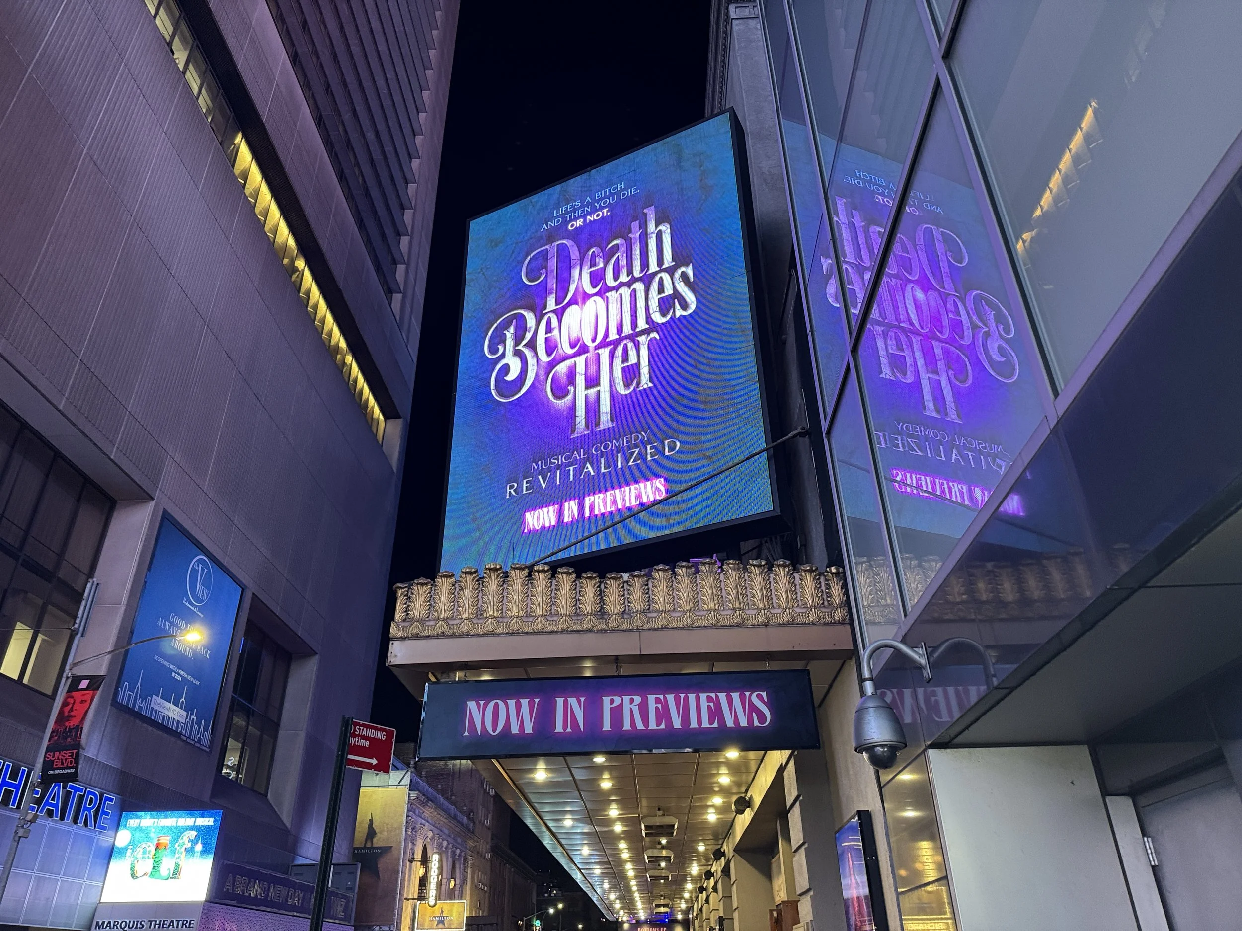 Emily and I made the wiser choice of seeing Death Becomes Her. Based on the 1992 movie of the same name, this brand-new musical was in previews and very challenging to get tickets to. Somehow, I found tickets in Orchestra for $99 a few days before the trip and quickly snagged them. We are so lucky I did, as we quickly found out that shows this weekend were tough to come by and those that were available were EXPENSIVE!