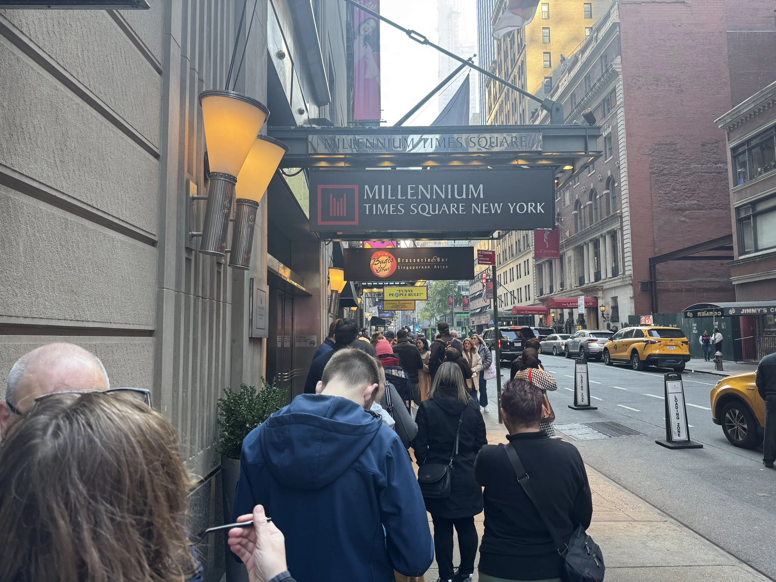 Upon landing, Grant zipped past everyone for Shake Shack to chow down on some grub. Hanger subsided. We took the Air Train and subway into the city. We were there and ready to check in to the hotel in about an hour. Last year, we stayed at the Sheraton; this year, it was the Hilton. Sheraton was in a better location, but Hilton was bigger —so each has pros and cons. Whoever has the lowest price is where we will stay next year as we have no loyalty to either one.
