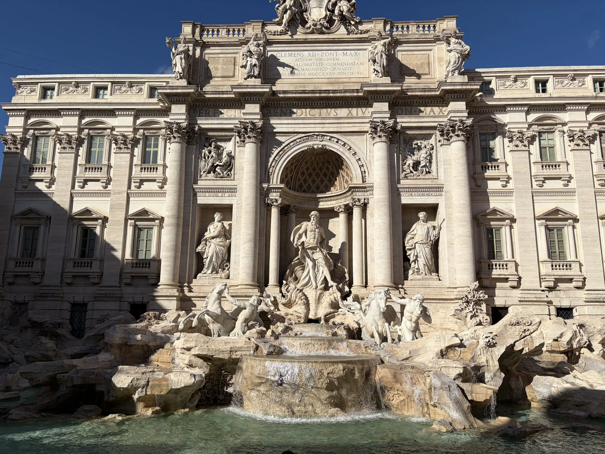 The next stop was one I had already seen before — Trevi Fountain. Fun fact: the whole coin-throwing tradition only took off after the movie Three Coins in the Fountain made it a thing. Today all that money is collected daily and donated to a church that uses it to feed the poor and homeless. Unfortunately, I happened to be there the very first weekend they rolled out a new €2 fee just to get close enough to throw a coin, and I simply could not bring myself to pay money to throw money away — though plenty of people happily did.