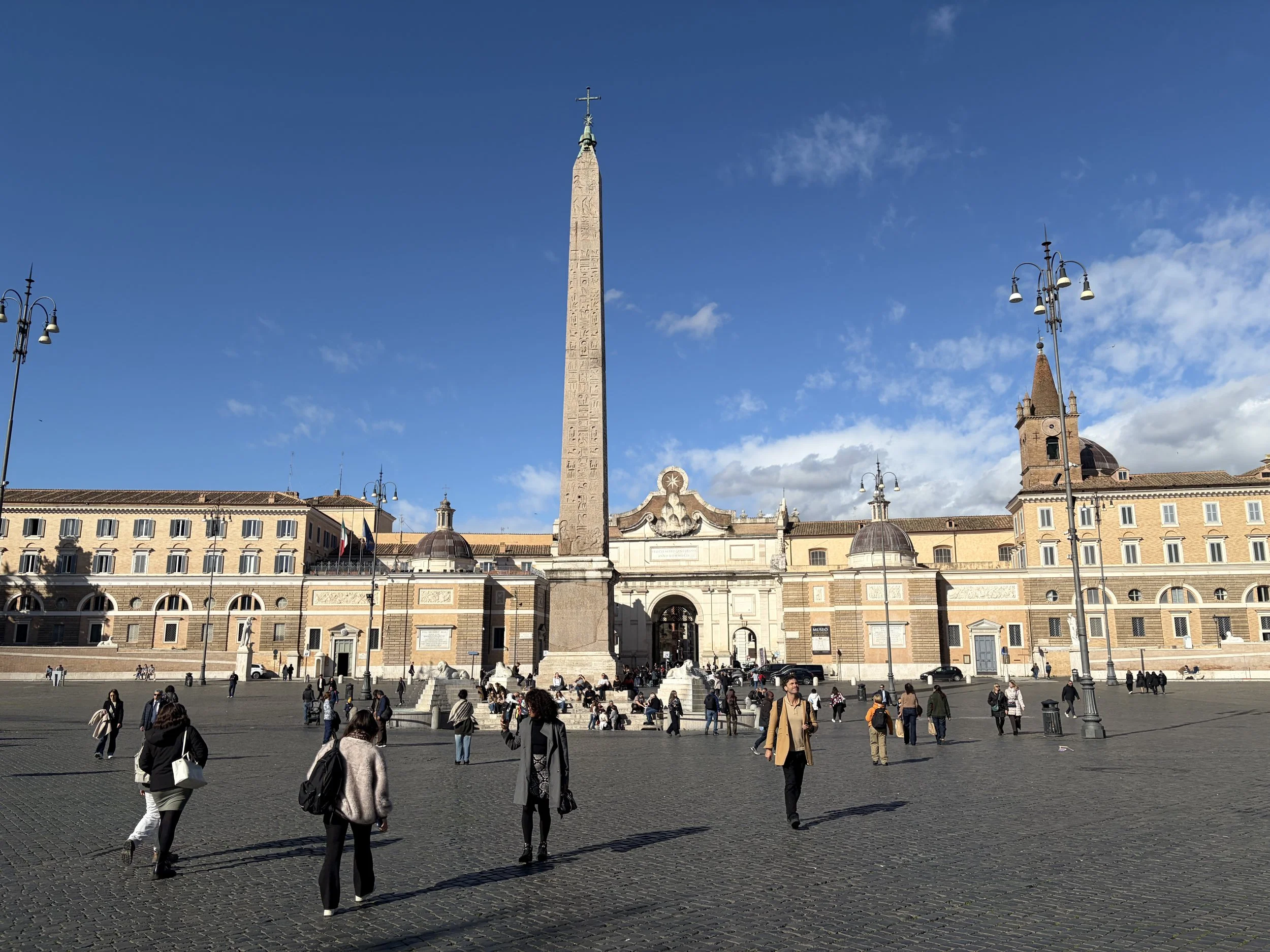 From there, I went to Piazza del Popolo, which is famous for being one of Rome’s grand “welcome” squares. The twin churches at the far end are meant to mirror each other (Rome loves a visual trick), and while one of the domes was under construction, it was still neat to see them.
