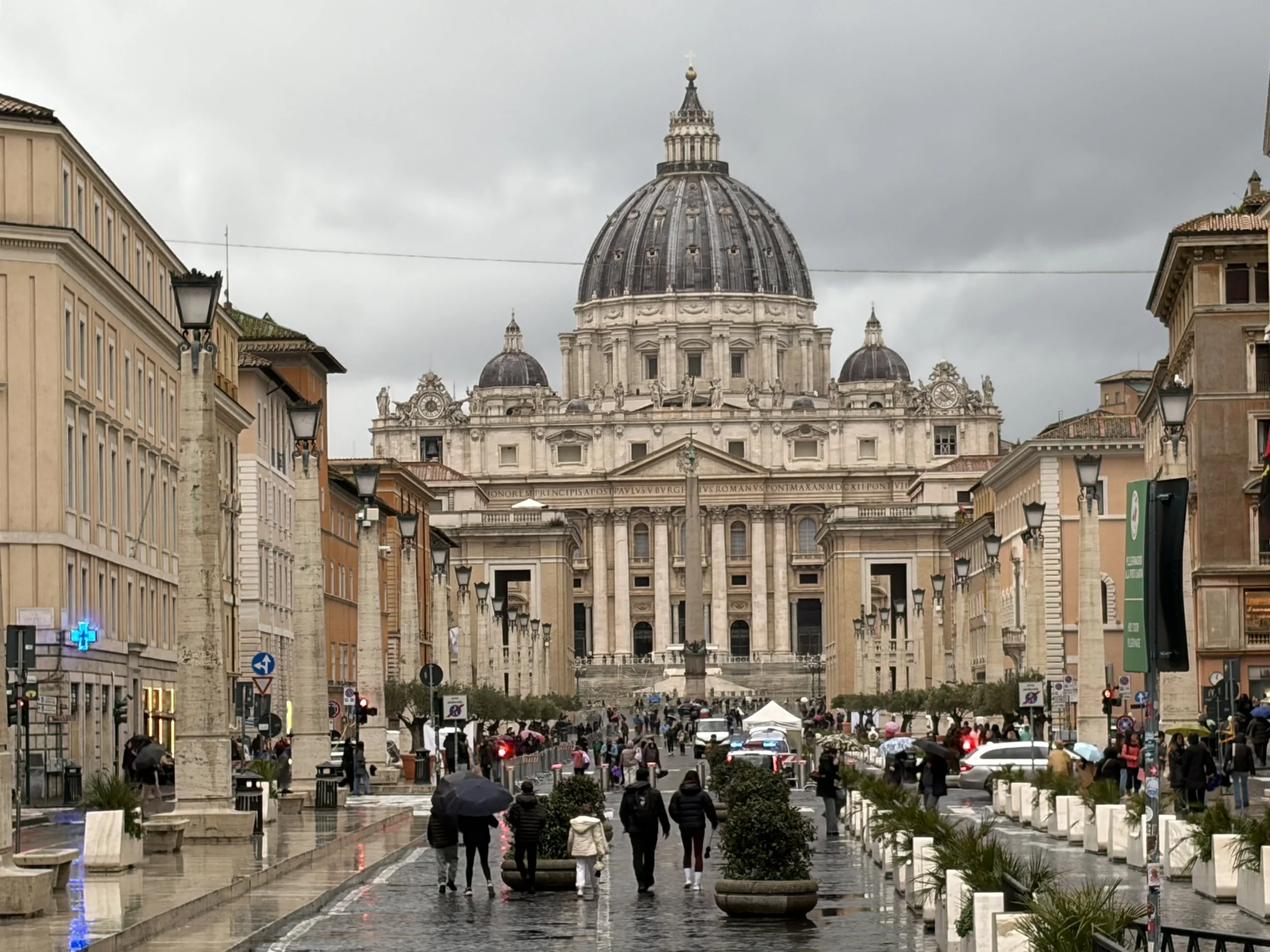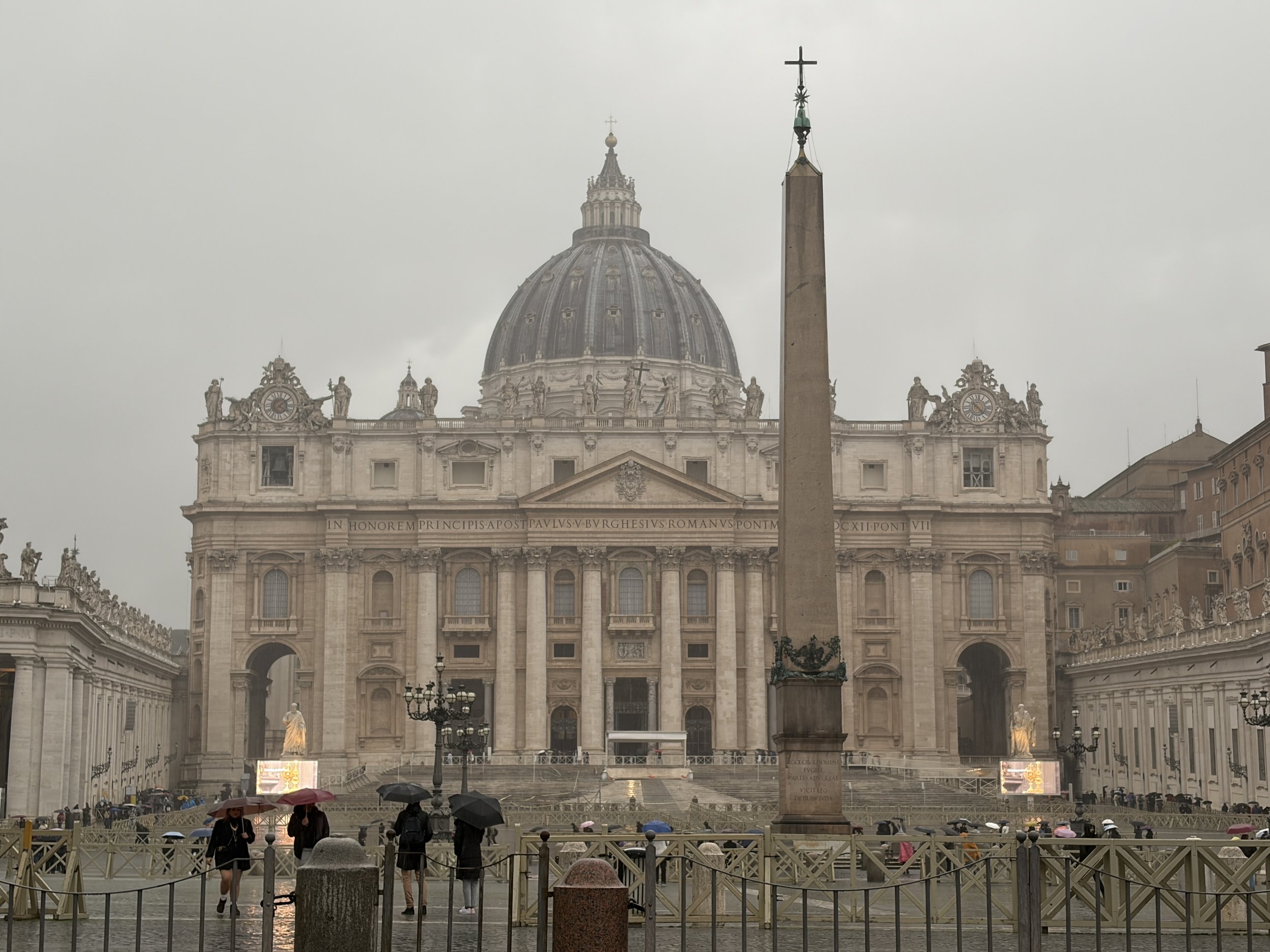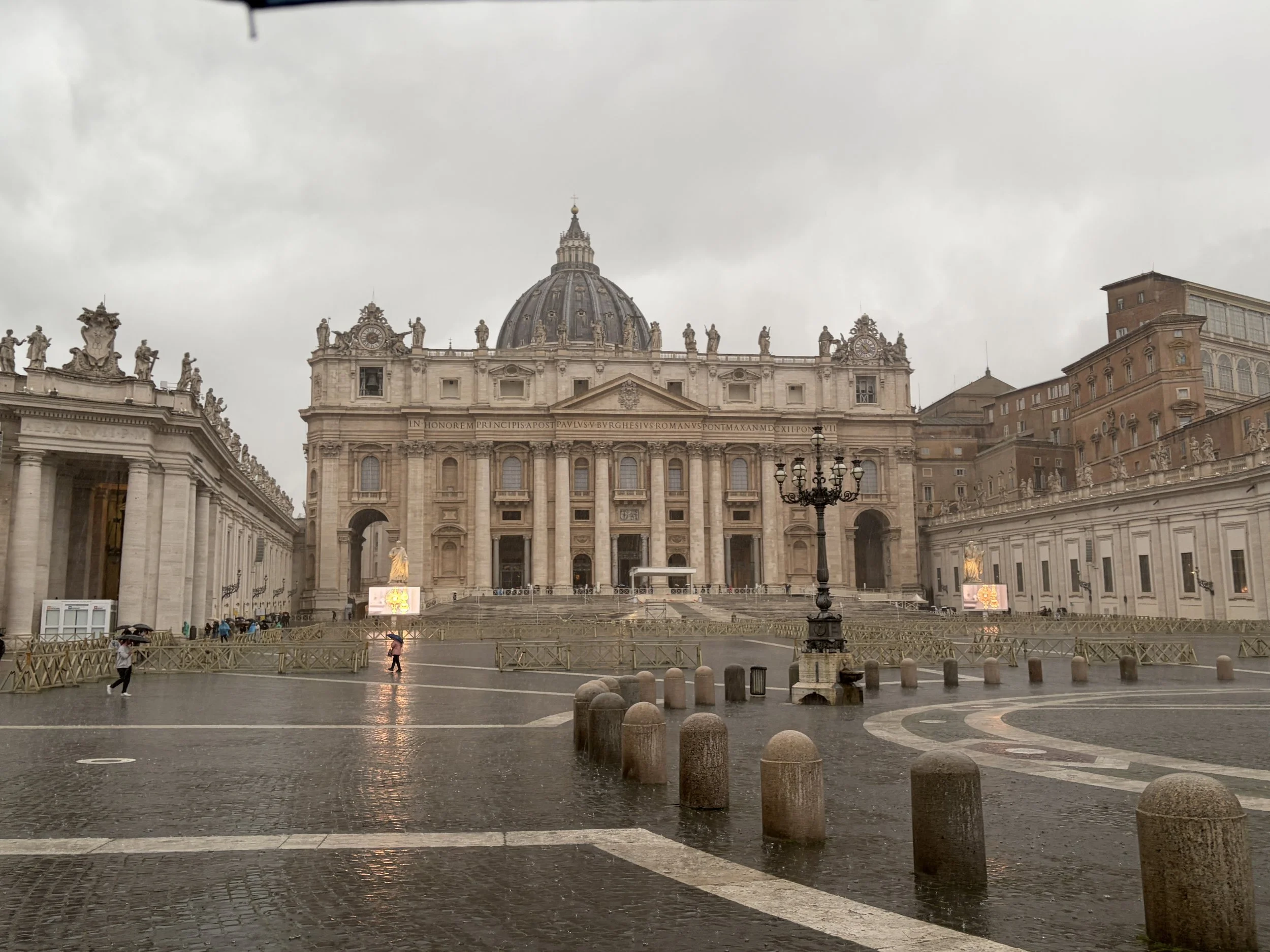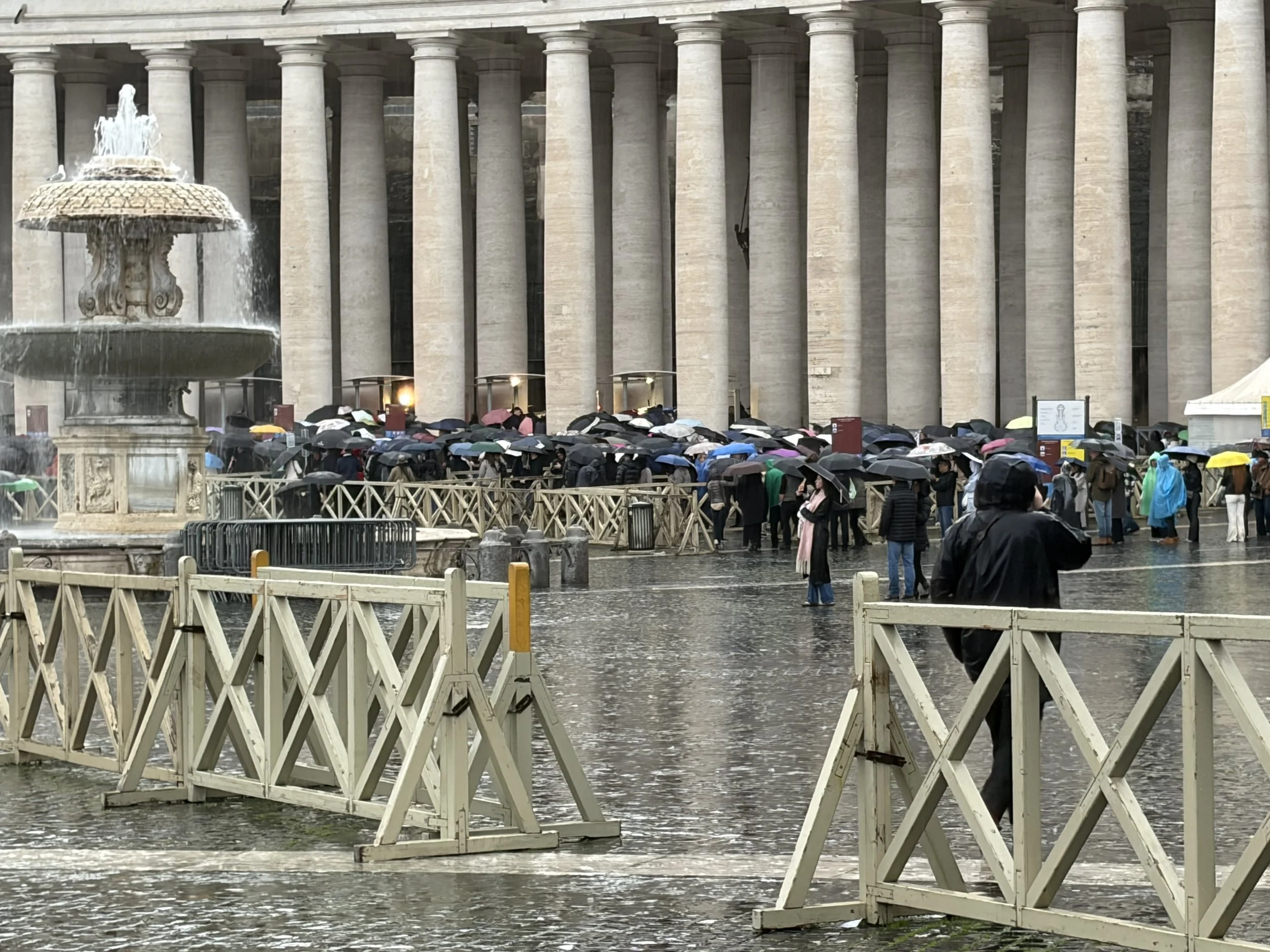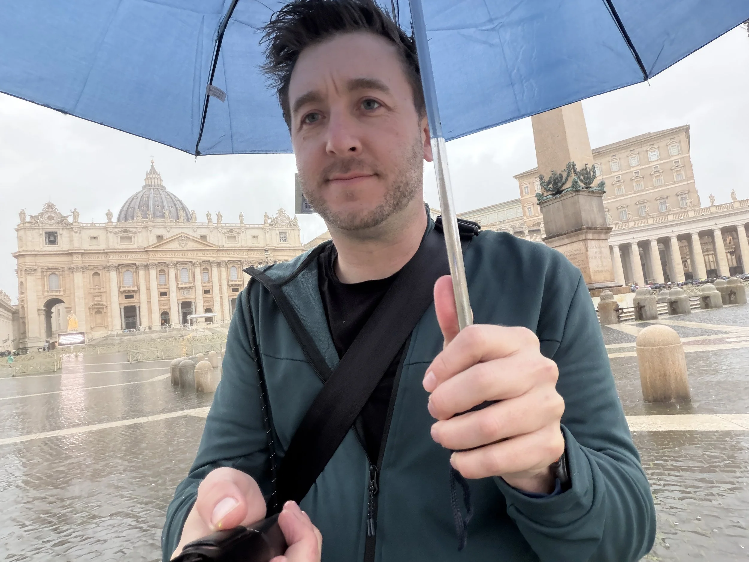 The rain lightened up, so I set off to find the ceramic shop… except it didn’t exist. I followed the directions, double-checked the location, and still nothing. Just as the frustration peaked, the skies opened up with a full downpour — as if the gods themselves decided I needed to be humbled. I sprinted into a tacky souvenir shop, got absolutely fleeced on an umbrella, and resigned myself to the next stop: Vatican City.