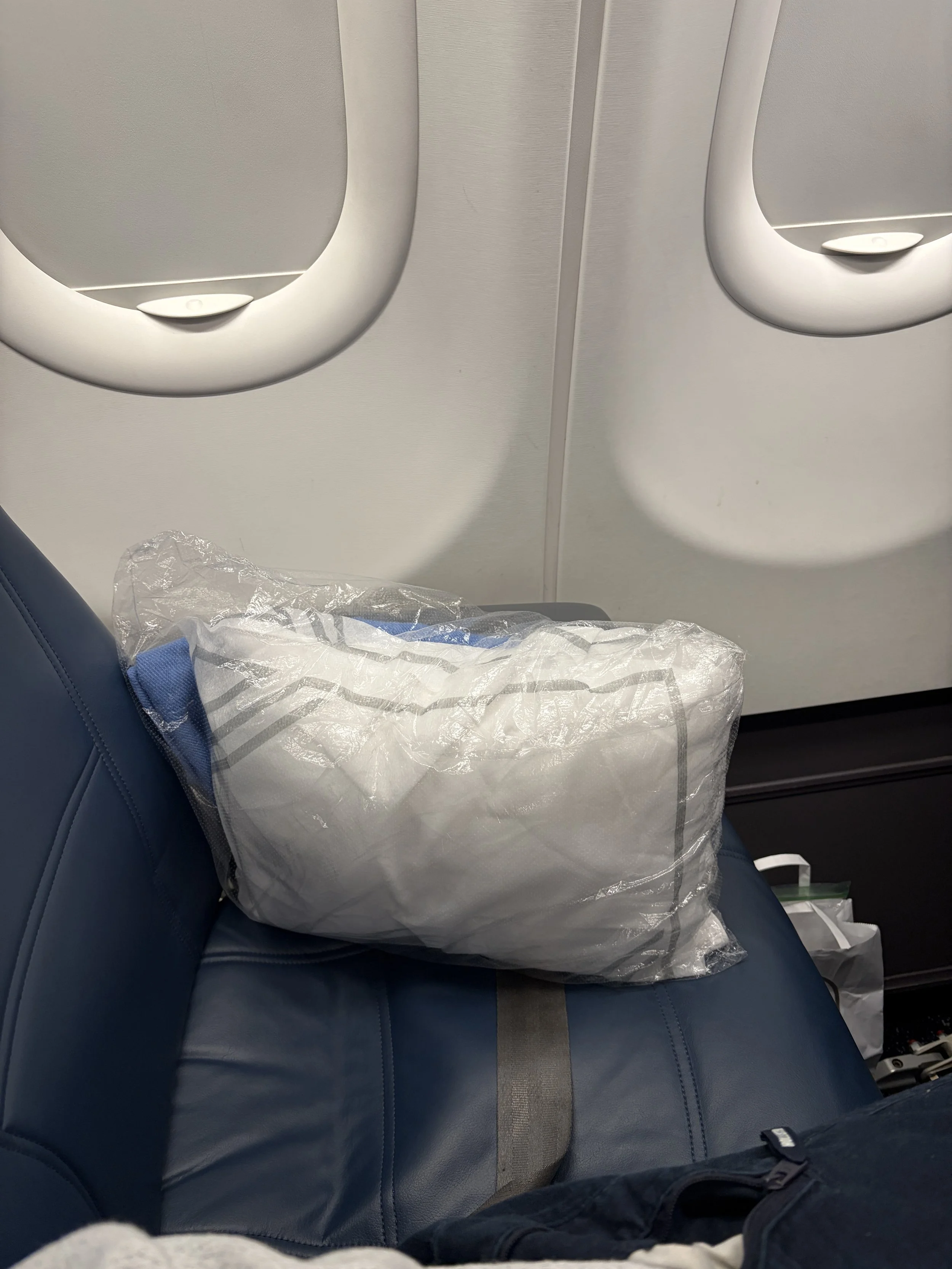On the way out, I realized I forgot a jacket and grabbed a San Diego sweatshirt at the airport. Comfy, practical, and screamed tourist. I weirdly loved it. First flight out the gate—Middle seat, back row — I knew what I signed up for.