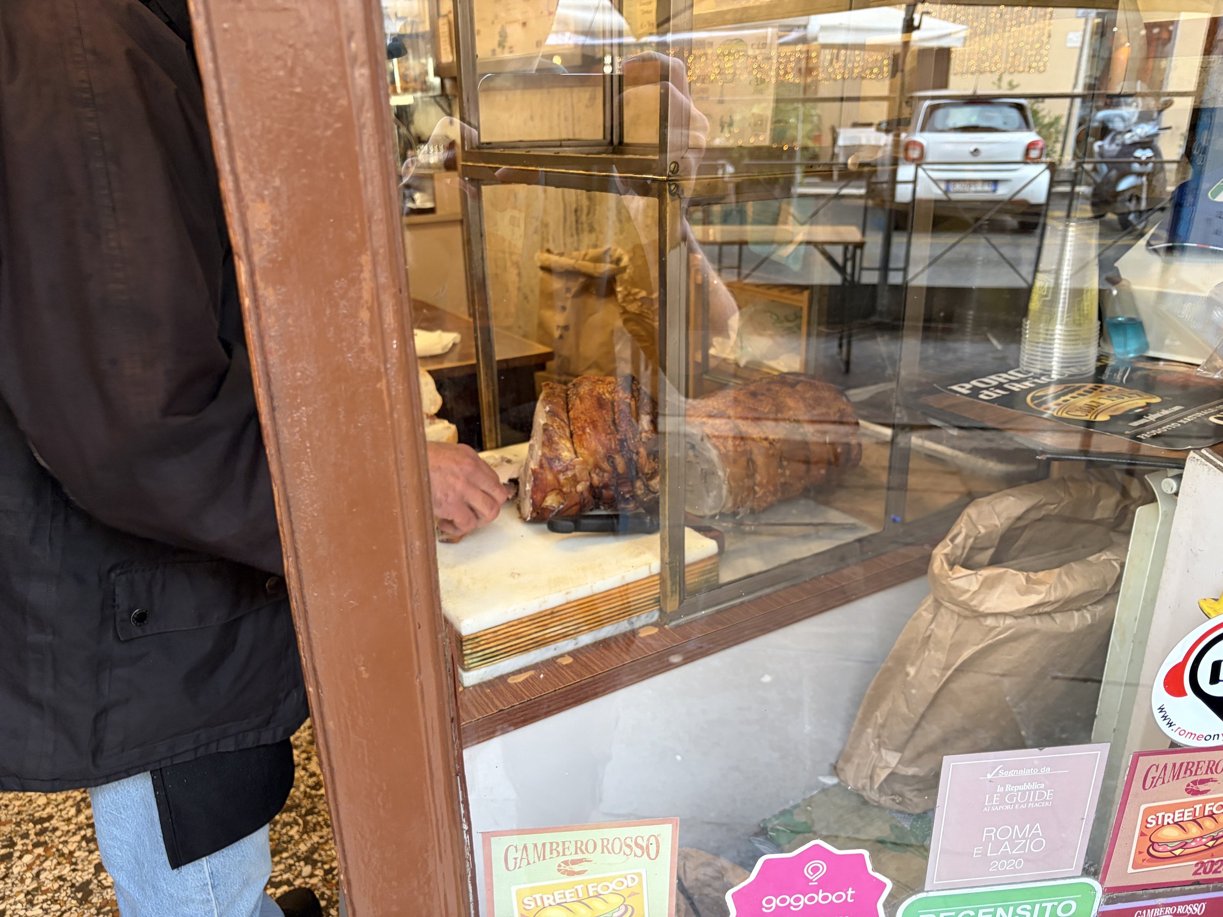 By that point, I had worked up an appetite and was fully committed to chasing the high of the porchetta from the night before. After a quick search, I landed on Er Buchetto, which was close to the hotel and supposedly known for its sandwiches. I hopped on the Metro, and the second I surfaced above ground, it started raining. As someone who lives in San Diego, rain is not something I actively plan for. When it rains back home, it’s an event. People talk about it. An inch of rain gets the same news coverage as a hurricane elsewhere. No one had mentioned rain, so I was completely unprepared and walked to the restaurant getting drenched.