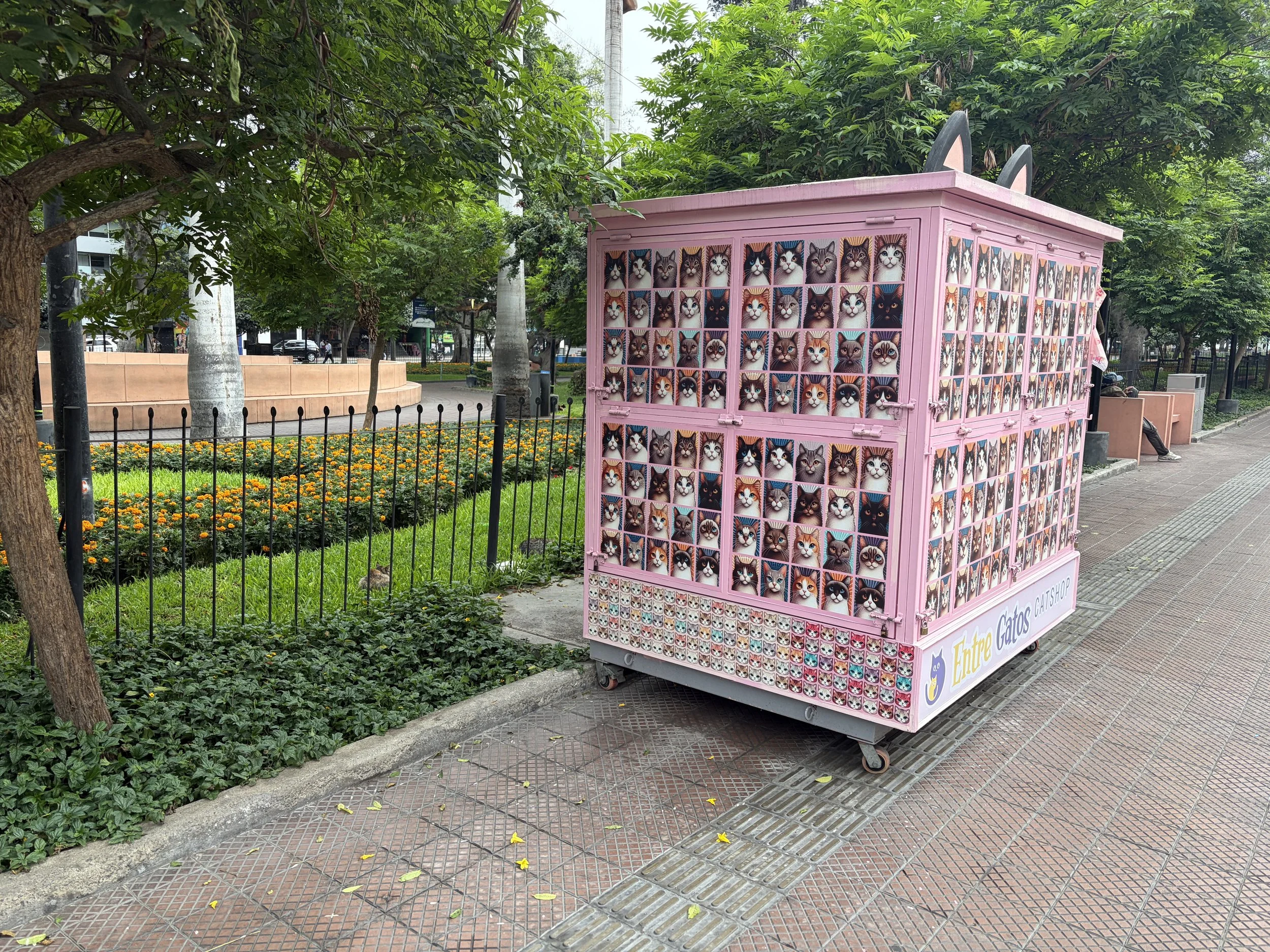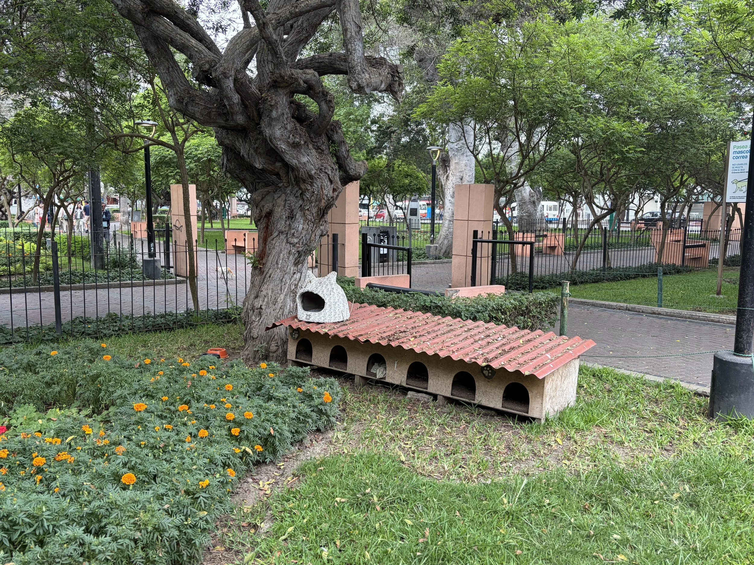 First stop: Kennedy Park—aka Cat Park. And when I say cats everywhere, I mean everywhere. Benches, bushes, rooftops, lounging like they pay rent. They had little houses, feeding stations, toys—it’s basically a cat HOA with better amenities than most apartment complexes in the area. I genuinely stopped and thought, “Grant would last about 90 seconds here before his allergies staged a full rebellion.”