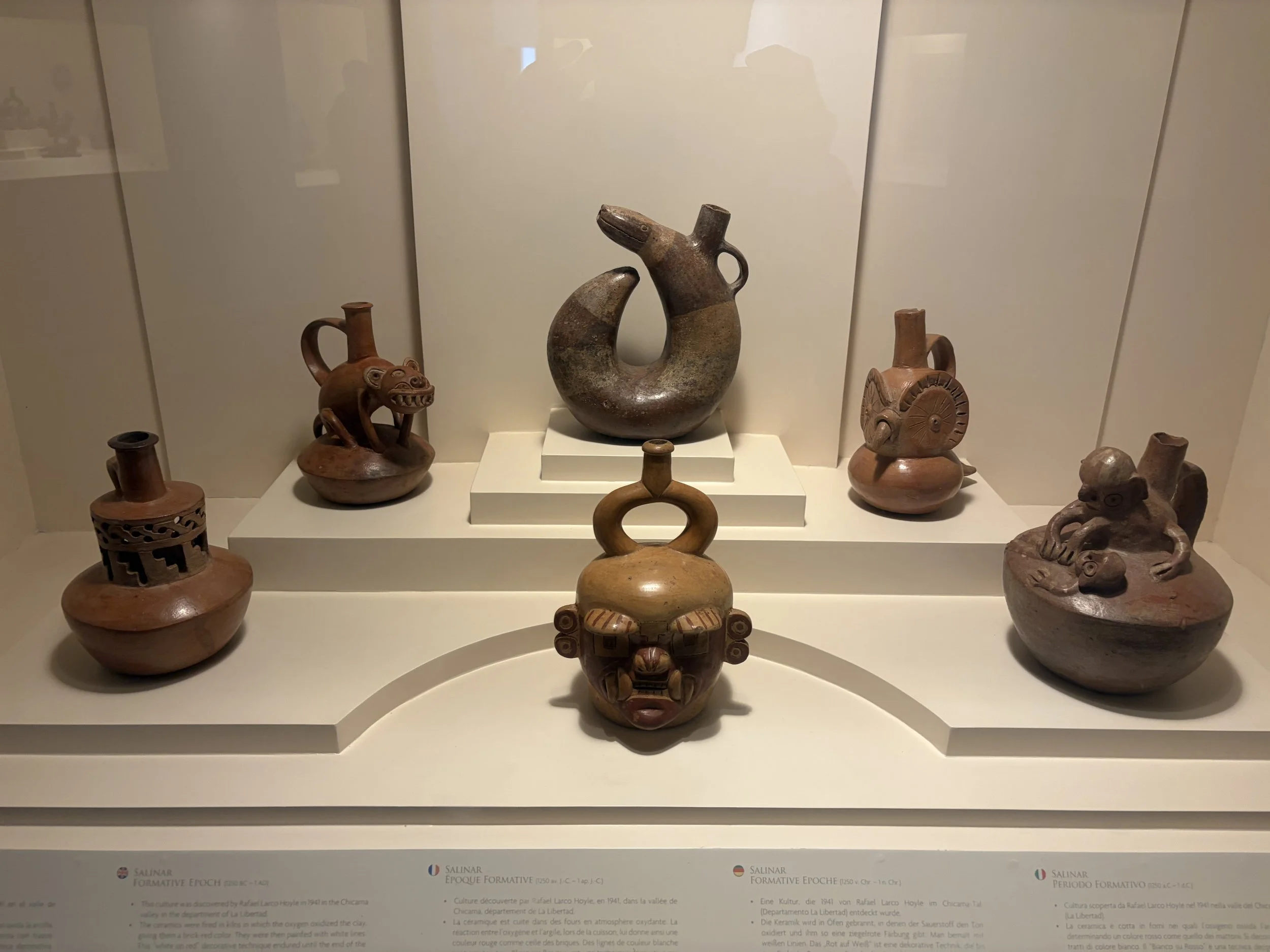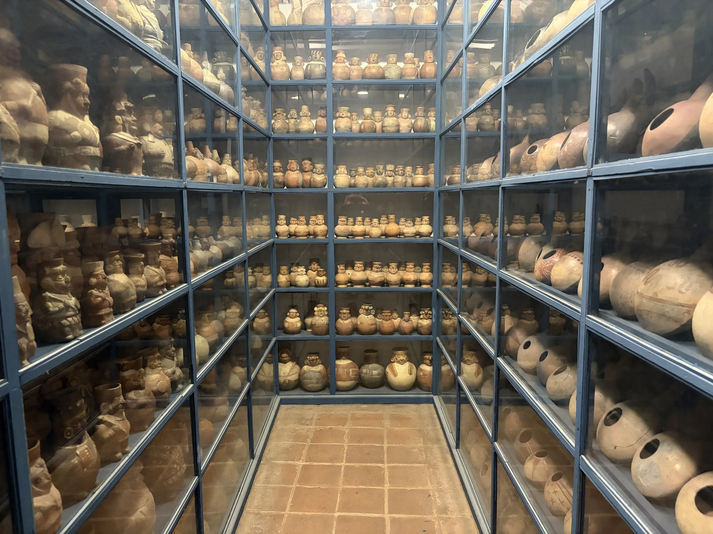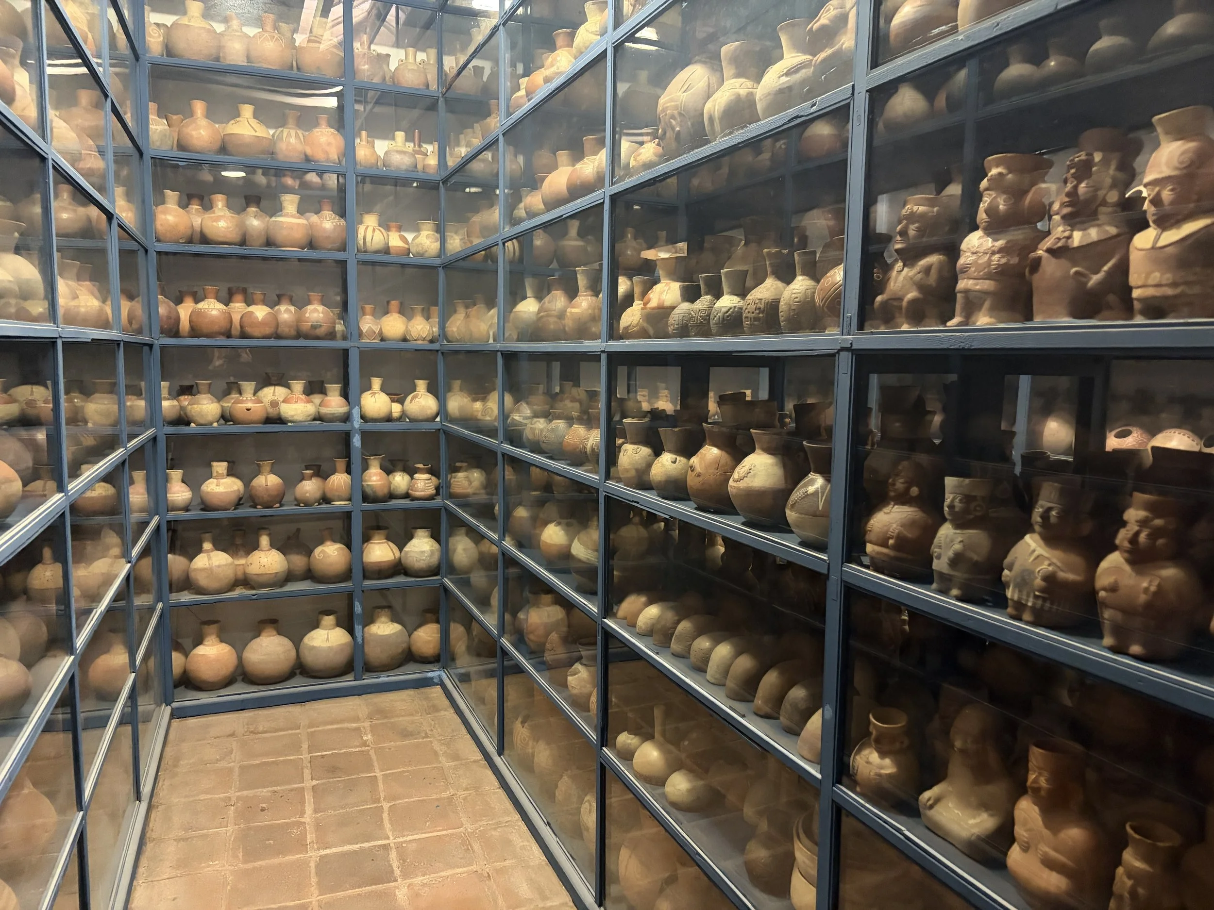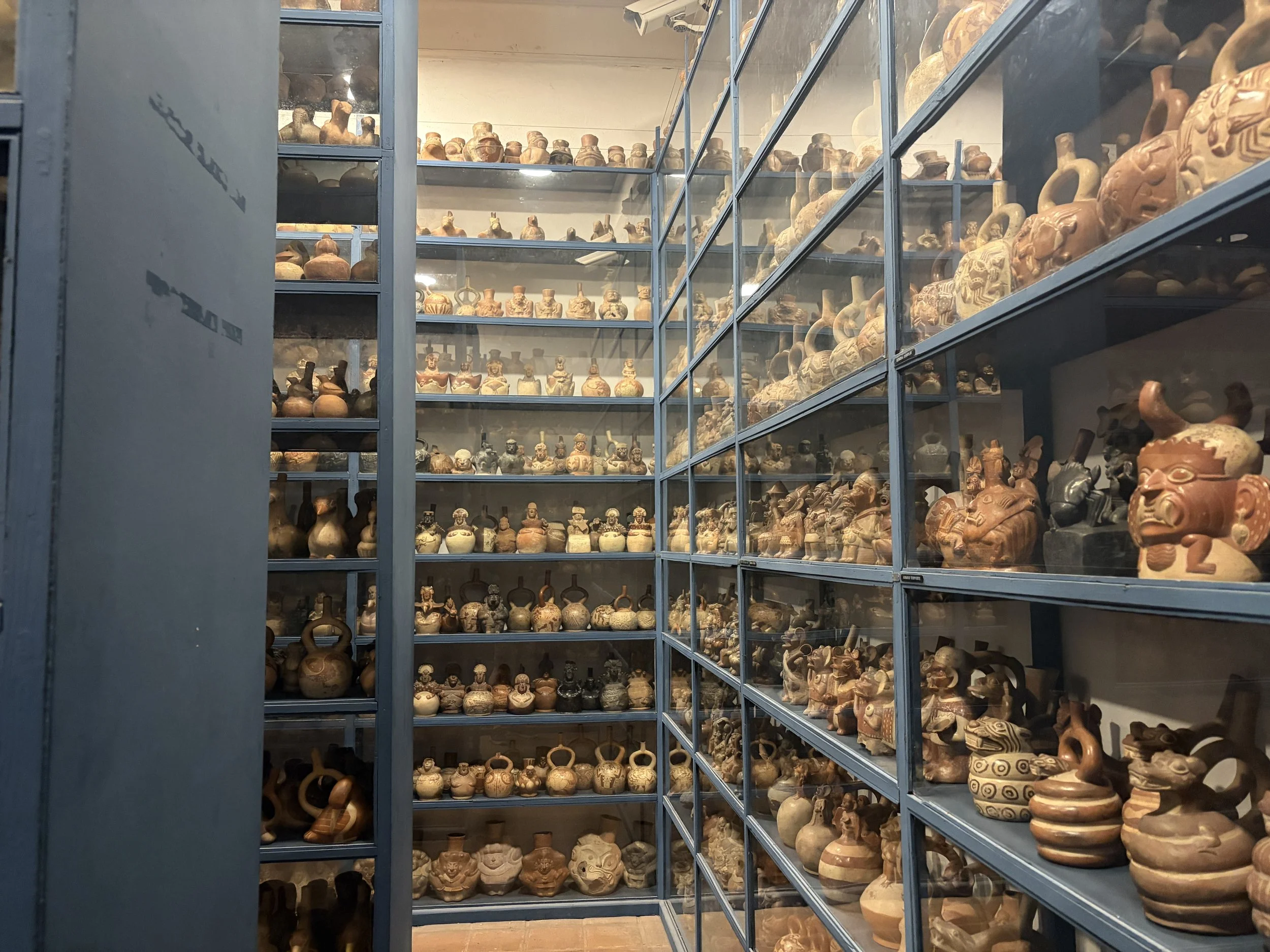 From there, I Ubered to Museo Larco, which is in a different district, and by this point I had learned to double whatever the estimated travel time was. That rule held true again. The museum itself was incredible—a walled-off space filled with one of the largest collections of Inca pottery in the world. One of the most unique aspects is that they actually display their storage, so when you see one jaguar ceramic on display, there are ten more sitting in storage like backups. It really drives home the scale of what they have.