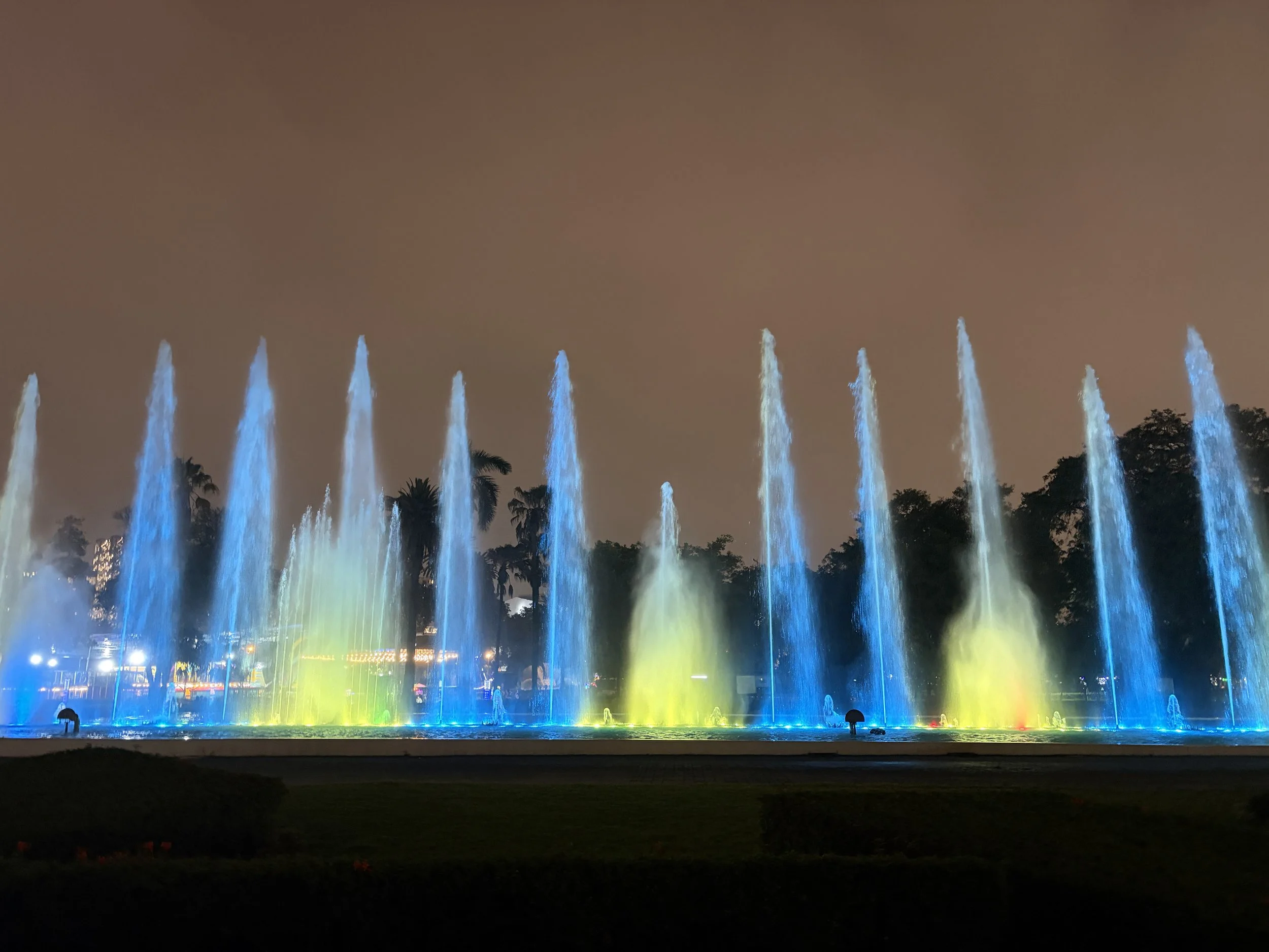 We walked through the Plaza de Armas as the sun started to set, and you could feel the energy shift as people began clearing out. From there, we went to the Magic Water Circuit, which felt like a mix between a park, a small amusement area, and a fountain show. There were go-karts, bounce houses, and families everywhere, and it honestly felt like a place Ripley would love.