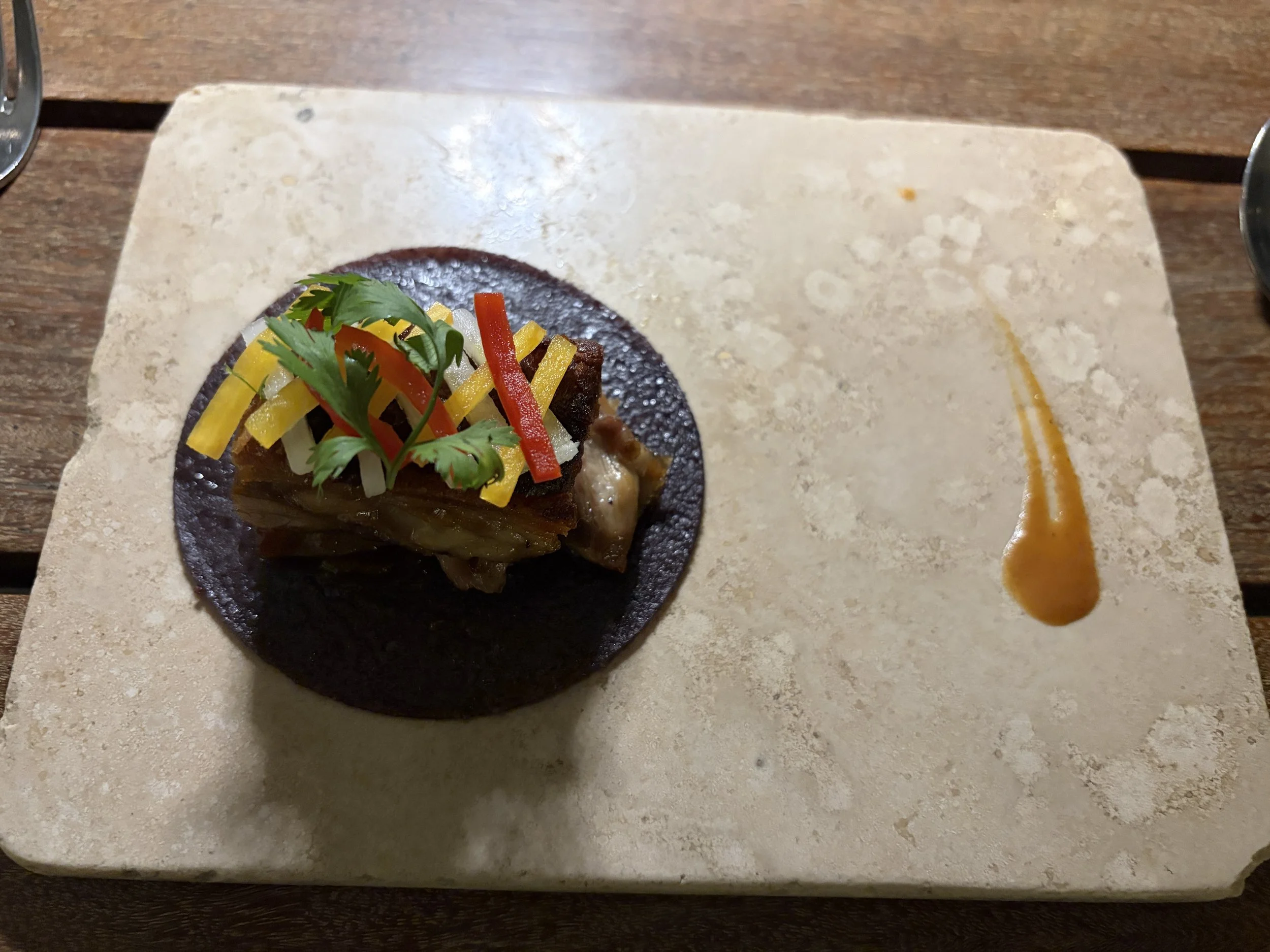 I ordered a mix of small plates and decided to fully commit by trying guinea pig. At first, it tasted somewhat like pork, but midway through eating it, the realization of what I was actually eating hit me, and it became more of a mental challenge than a culinary one. I powered through, partly to redeem myself for not finishing the beef heart earlier, but it’s not something I feel the need to revisit.