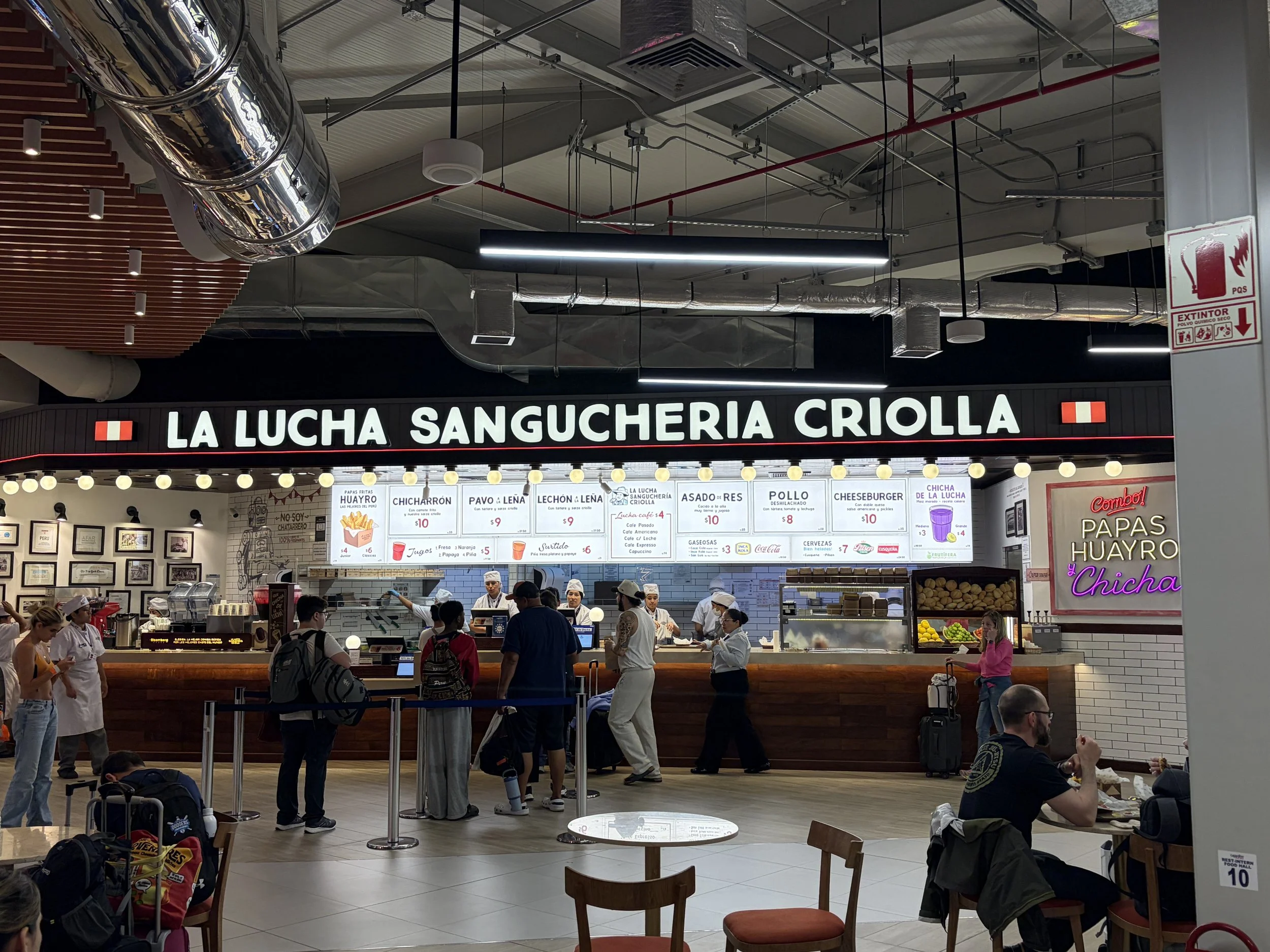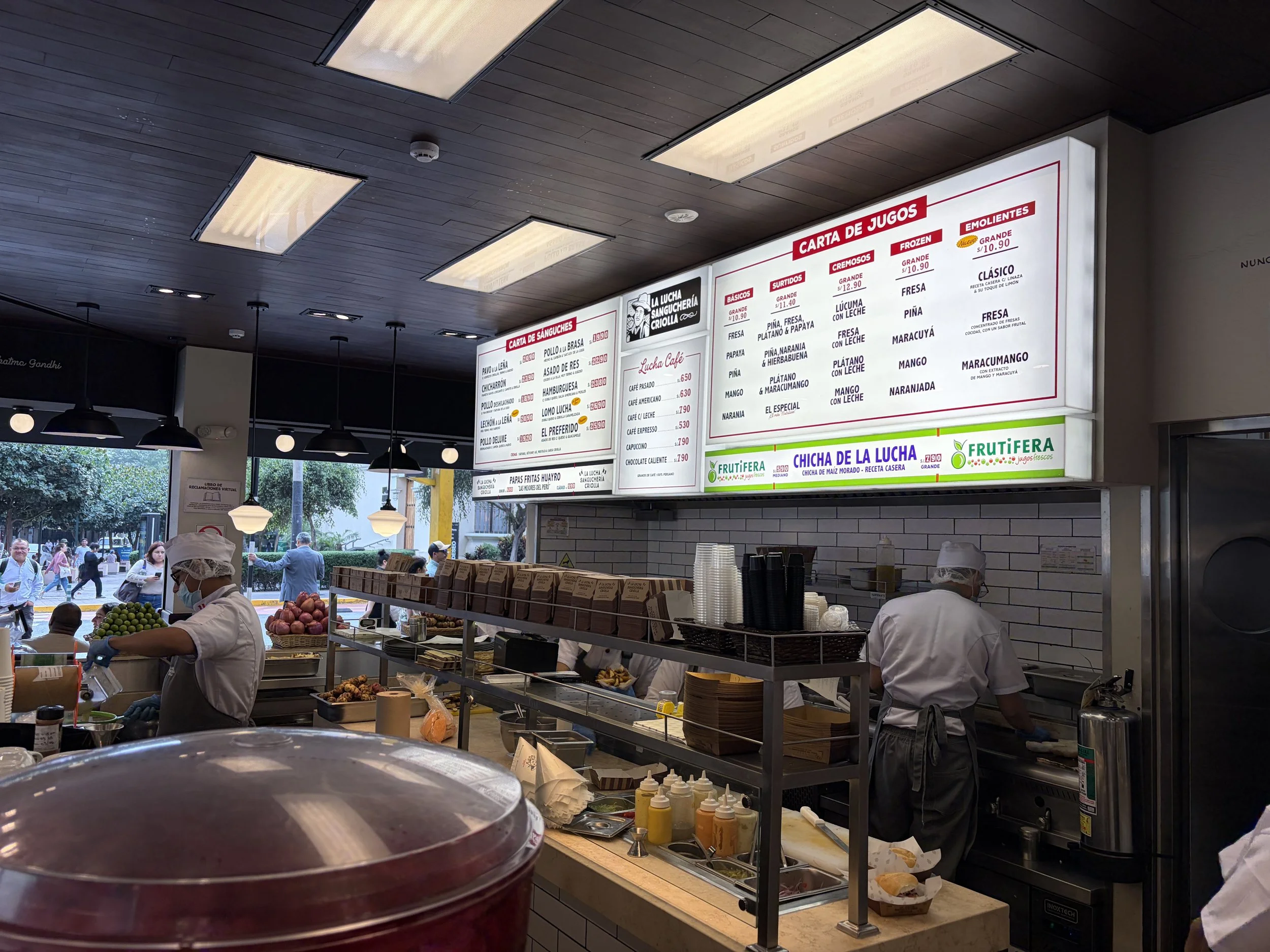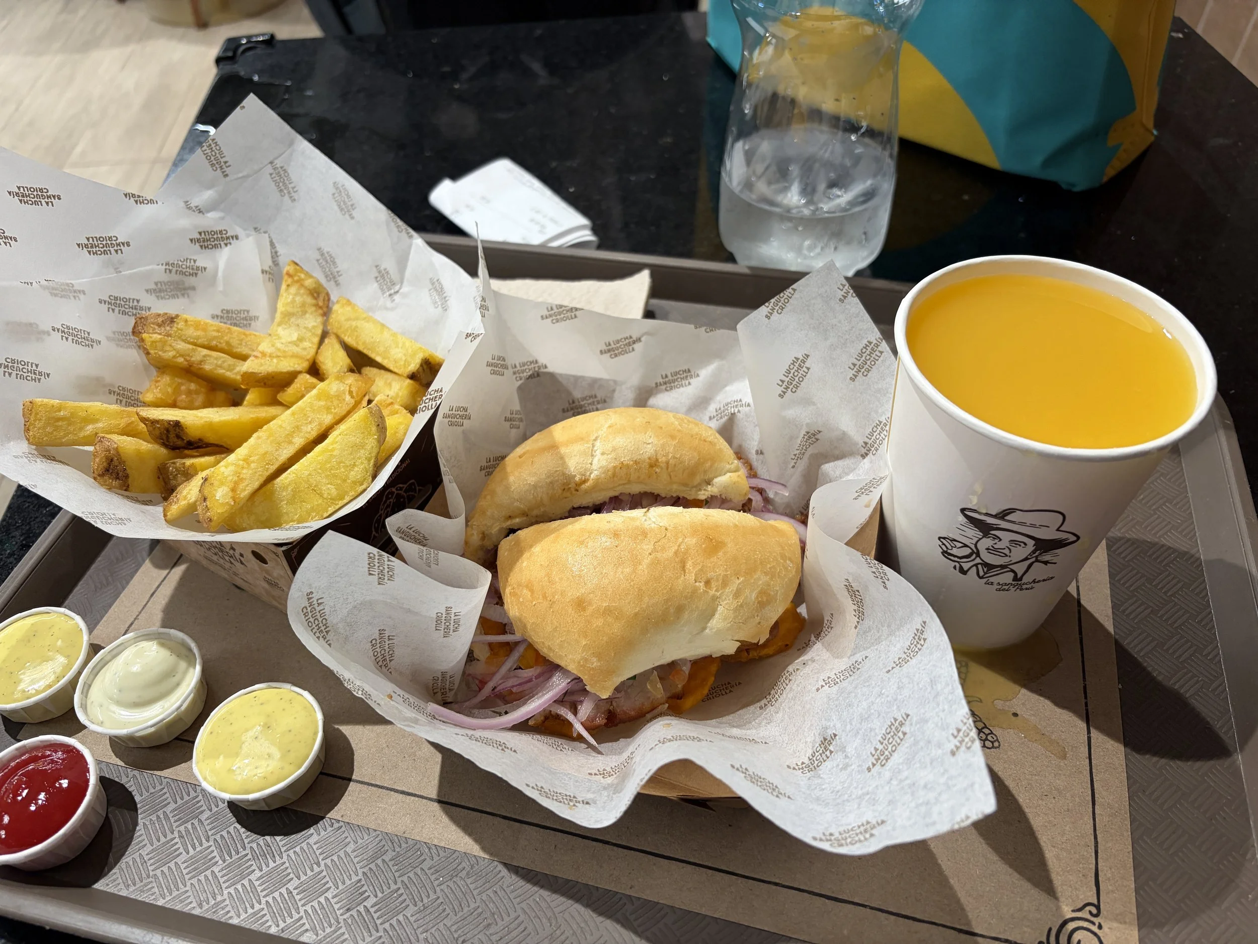 After surviving that, I needed food. I stopped at La Lucha Sanguchería Criolla. Menu in Spanish, but enough overlap to order a roast beef sandwich, fries, and the purple corn drink (maíz morado). The sandwich was solid. But the fries? Elite.