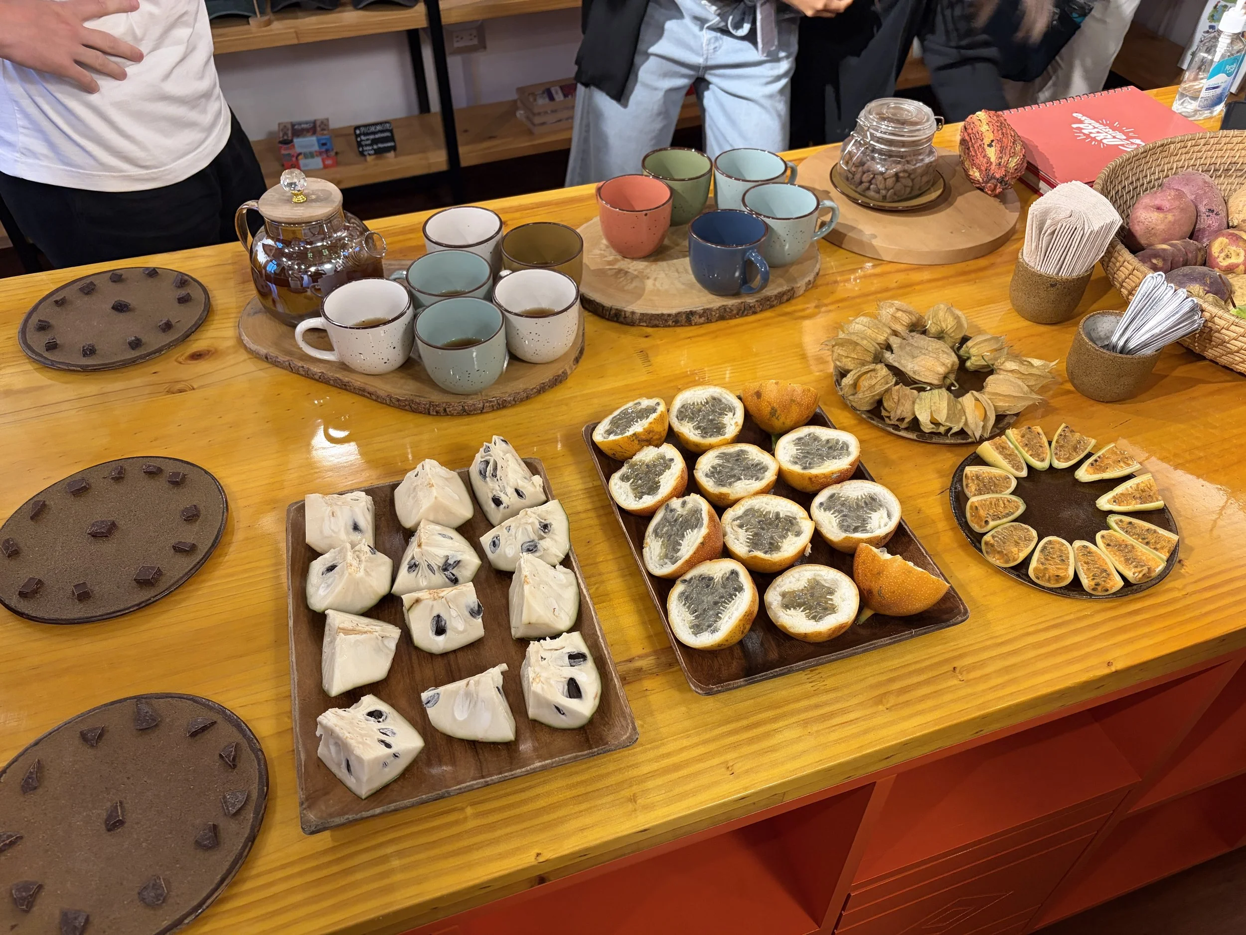 From there, we moved on to a fruit tasting that ranged from interesting to slightly questionable. Some were slimy, some sour, some sweet, but the standout was definitely chirimoya, which they described as a “creamy apple.” It actually lived up to the hype—smooth, sweet, and something I immediately thought Ripley would love. Now I’m on a mission to figure out where to find it in California.